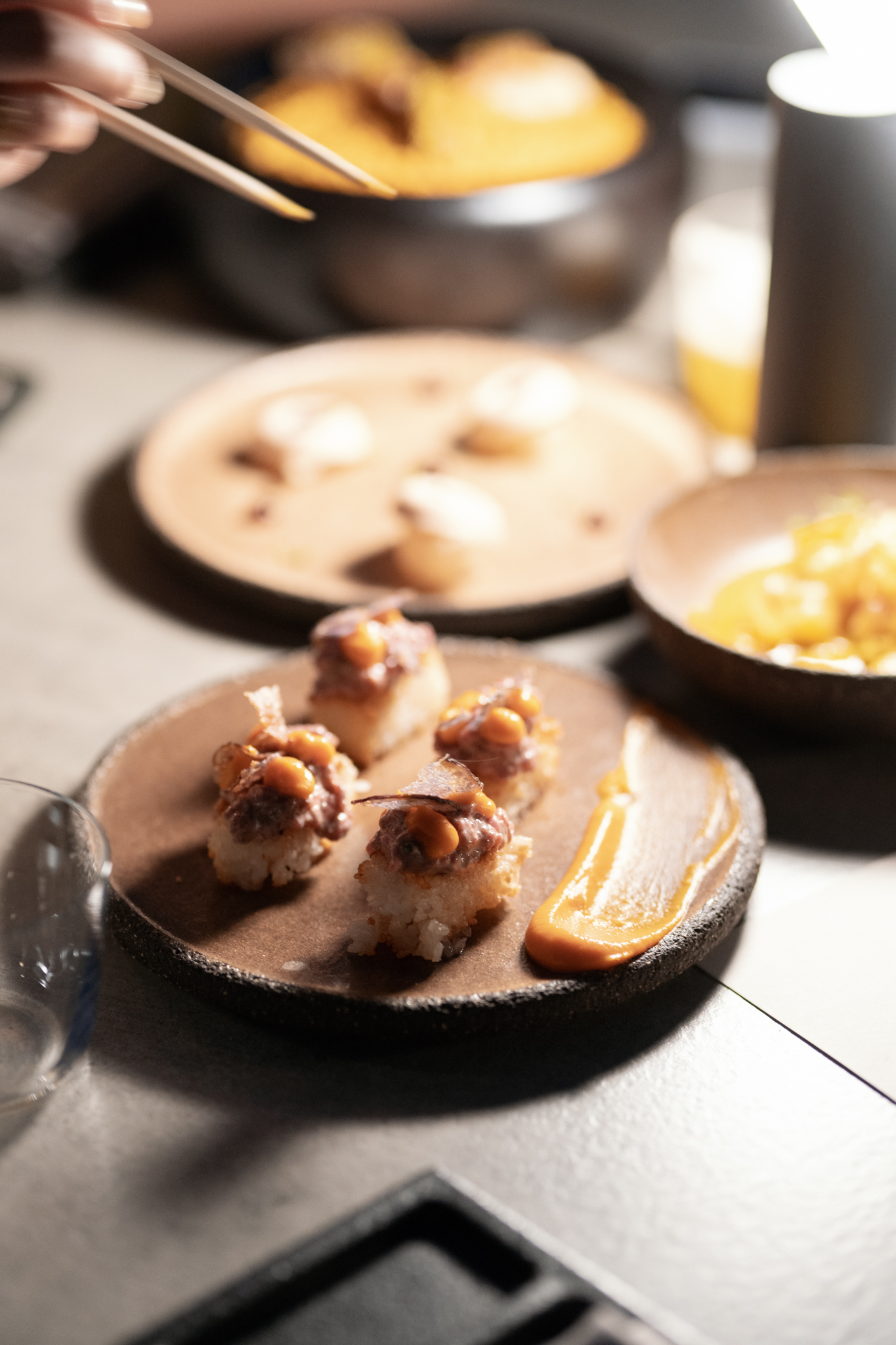 Στην παράδοση των μεγάλων παγκόσμιων σεφ που υπηρέτησαν το είδος από τον Nobu Matsuhisa μέχρι τον Fernand Adria και τον Mitsuharu Tsumura.