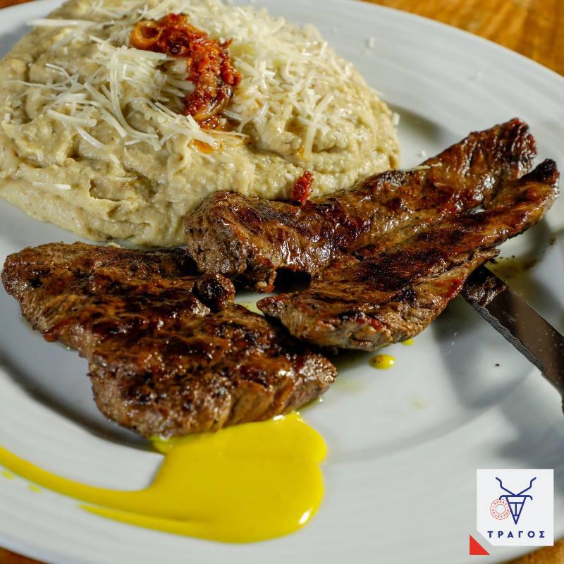 Στην αγαπημένη Στοά Ερμείον, απέναντι από το Ούζου Μέλαθρον εκεί που στην κουζίνα του Τράγου συναντιούνται οι εξαιρετικές πρώτες ύλες, τα καλύτερα κρέατα και μαγειρεύονται σχεδόν αποθεωτικά φτάνοντας στο πιάτο σου με μοναδικές γαρνιτούρες. Απόλαυση σε εξαιρετικά φιλικές τιμές και διαθέσεις. Κρεατοφαγικό έπος από την αρχή μέχρι το τέλος! Δοκιμάστε το!