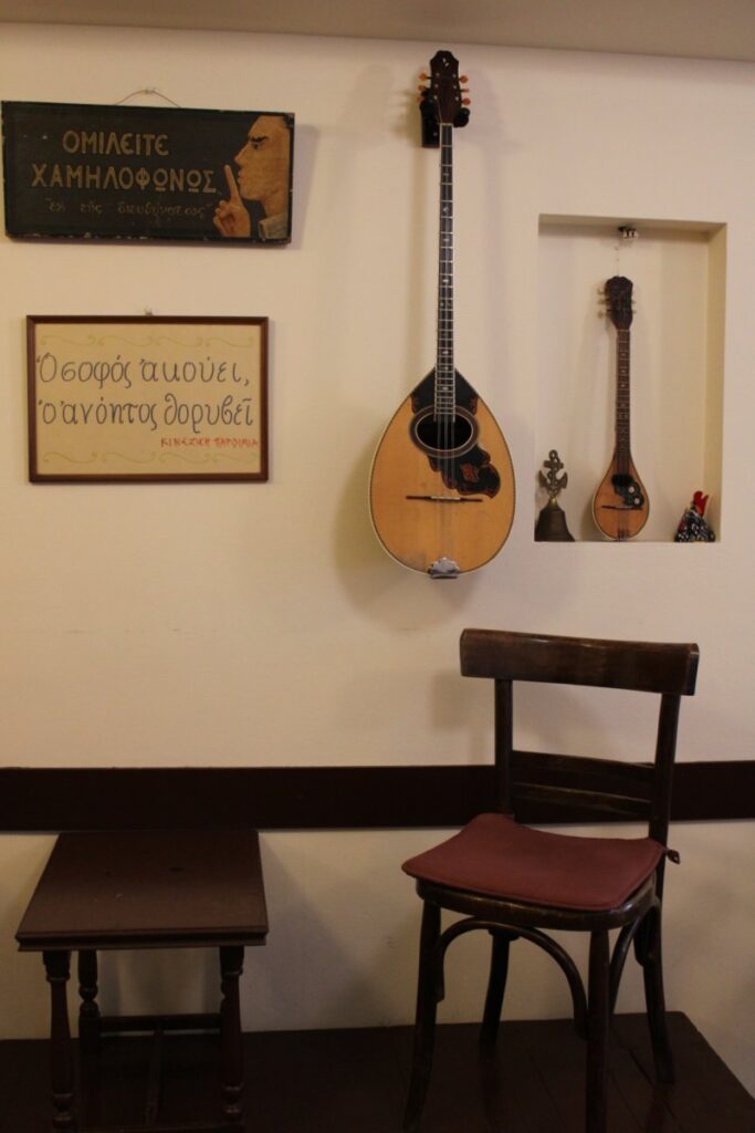Από Τετάρτη & Πέμπτη 12.00 – 24.00, Παρασκευή & Σάββατο 12.00 – 02.00 και τις Κυριακές 12.00 – 21.00, απολαμβάνετε το μεσημεριανό ή το βραδινό σας γεύμα με την παρέα σε μια ατμόσφαιρα σούπερ cosy, που σας κάνει να θέλετε να μείνετε λίγο παραπάνω ή να επιστρέφετε διαρκώς. Εδώ, βέβαια, παράλληλα με το φαγητό, που είναι ο απόλυτος πρωταγωνιστής, η μουσική διαμορφώνει κάποιες εξαιρετικές βραδιές. Κάθε εβδομάδα, ο χώρος γεμίζει από μελωδίες live ρεμπέτικου κι έντεχνου (Πέμπτες, Παρασκευές, Σάββατα από τις 21:00 και τις Κυριακές από τις 15:00), που σας ταξιδεύουν σε άλλους τόπους και χρόνους.