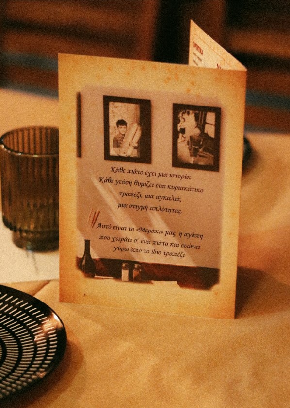 Φανταστείτε έναν χώρο όπου η παράδοση, η ζεστασιά και η αυθεντικότητα της ελληνικής φιλοξενίας σας περιβάλλουν με μια σπιτική σχεδόν ζεστασιά. Ένα στέκι όπου κυριαρχεί η αίσθηση του διαχρονικού, το άρωμα των φρέσκων υλικών και οι ήχοι της ζωντανής μουσικής. Όλα αυτά συνθέτουν καθημερινά μια ιδιαίτερη εμπειρία, που ξυπνάει όλες τις αισθήσεις. Εδώ, θα ανακαλύψετε έναν αληθινό γαστρονομικό θησαυρό της πόλης. Το ταξίδι στις ελληνικές παραδοσιακές γεύσεις γίνεται μέσα από μια πιο σύγχρονη ματιά, όπου όλα μαγειρεύονται με μεράκι και σεβασμό στην τοπική πρώτη ύλη. Κάθε πιάτο αφηγείται μια ιστορία ξεχωριστή, ως μέρος μιας γευστικής περιπλάνησης. Οι μεζέδες θα σας θυμίσουν Κυριακές γύρω από το οικογενειακό τραπέζι, ενώ τα πιάτα με τα φρέσκα θαλασσινά και τα κρέατα θα σας προσφέρουν την απόλαυση του να βρίσκεστε σ’ ένα ελληνικό χωριό.