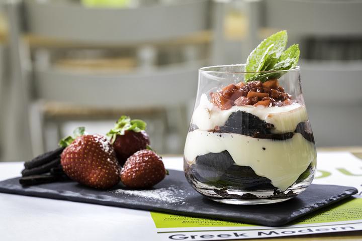 Και κάτι γλυκό για το τέλος. Έτσι δεν λέμε; Δεν θα μπορούσε να κλείσει καλύτερα το γεύμα σας χωρίς ένα σουφλέ σοκολάτας πάνω σε κρέμα από αμαρέτο και παπαρουνόσπορο σερβιρισμένο με παγωτό βανίλια ή ένα cheese cake με μπισκότο σοκολάτας και φράουλες μαριναρισμένες σε κονιάκ και μαύρη ζάχαρη.