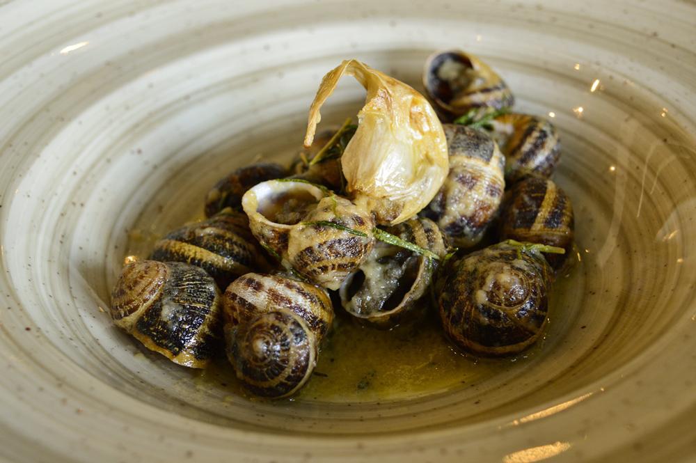 Ο χοχλιός θα φτάσει με το ειδικό πιρουνάκι που θα σε βοηθήσει να μην παιδευτείς, η φάβα θα παντρευτεί με τους περίφημους ασκορδουλάκους, τα περίφημα μοβ ταπεινά λουλουδάκια των αγρών, η μαύρη μυζιθρόπιτα από αλεύρι χαρουπιού και μέλι από χαρούπι αλλάζει την οπτική μας για το μυζιθροπιτάκι που τρως αλλού και πονά το στομάχι σου. Προσκυνάς στην οφτή πατάτα που πρώτα τη φουρνίζει και μετά την τηγανίζει σε έξτρα παρθένο ελαιόλαδο στην κατσαρόλα και τη σερβίρει με τη στάκα τη γραβιέρα και το φρέσκο θυμάρι, τα δε μανιτάρια, ωραίοι κρητικοί αμανίτες, τους τηγανίζει με ένα θεϊκό κουρκούτι από ρακή και τους πλαγιάζει πλάι σε κρέμα από αβοκάντο και παντζάρι που λες αλληλούια!