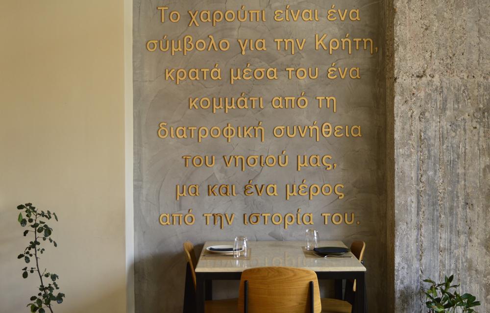Το Χαρούπι προσγειώθηκε στον πλανήτη απόλαυση πριν λίγους μήνες στα Λαδάδικα. Σκοπός του ήταν να συστήσει τα μυστικά της Κρητικής κουζίνας που δεν γνωρίζουμε, τα υλικά και τις εναλλαγές που οι κρητικοί υπηρετούν αιώνες μέσα από καινούργια μονοπάτια που εντάσσουν στην παράδοση τις γνώσεις, τις δυνατότητες και τις τεχνικές του σήμερα. Έτσι γεννήθηκε και αυτός ο υπέροχος μίνιμαλ χώρος, αιώνες μακριά από το φολκλόρ παρόμοιων προσπαθειών, με μερικά εύστοχα σημάδια να σηματοδοτούν την σχέση του με τη μεγαλόνησο και την παρουσία εξαιρετικής μουσικής του νησιού να διαπερνά διακριτικά το χώρο.