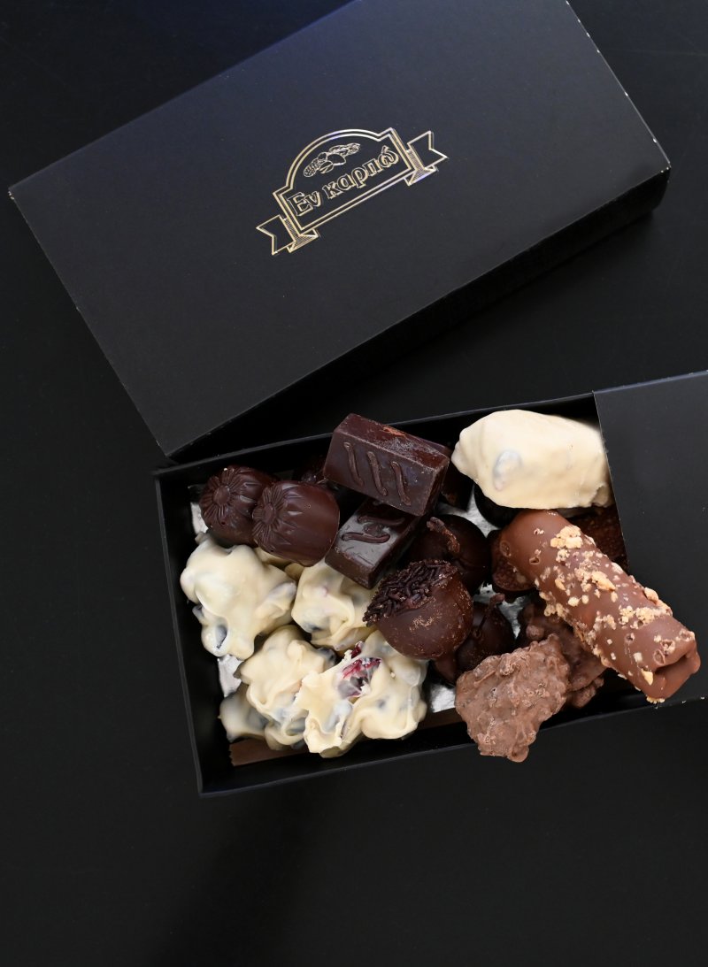 Πριν φύγετε από το κατάστημα, προμηθευτείτε οπωσδήποτε τα σοκολατάκια παραγωγής του Εν Καρπώ, που θα ανακαλύψετε σε μια μεγάλη ποικιλία γεύσεων, κι εκτός από απολαυστικά είναι και μια healthy επιλογή.