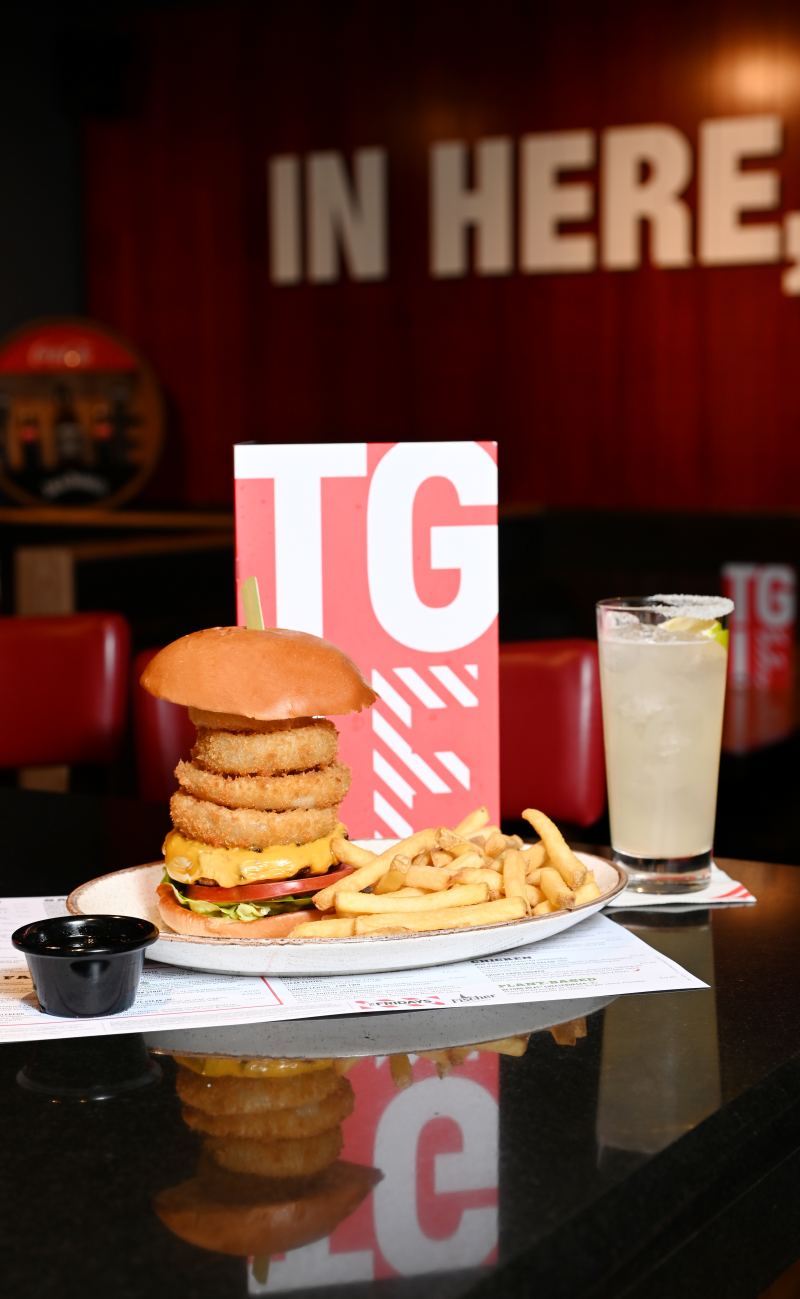 Μια επίσκεψη στα TGI Fridays αποτελεί αληθινή εμπειρία για όλες τις αισθήσεις: η fun ατμόσφαιρα και διάθεση του έμπειρου προσωπικού, η made in USA διακόσμηση και το ζεστό περιβάλλον, και τα χορταστικά, αλλά κυρίως γευστικά, signature πιάτα του. Potato Twisters, Jack Daniel’s® Grill, γευστικές σαλάτες, όπως οι Grapefruit-Apple Salad και Barbecue Salad, λαχταριστά επιδόρπια, όπως τα Oreo Madness® και Death by Chocolate, αλλά και απίθανα cocktails, όπως η αγαπημένη μας Fridays™ Margarita, συνθέτουν ένα πλήρες μενού, ιδανική πρόταση για ένα φιλικό, οικογενειακό ή επαγγελματικό γεύμα, ένα cocktail μετά τη δουλειά ή μια βραδινή έξοδο με φίλους, ακόμα κι ένα birthday party. Ως master των burgers, τιμά την Ημέρα με το Μοσχαρίσιο burger Fridays™ Signature Glaze, με Jack Daniel’s® Whiskey, onion rings, φύλλο γαλλικής σαλάτας, ντομάτα και λιωμένο Cheddar, που συνοδεύεται με Fridays™ Signature Glaze.