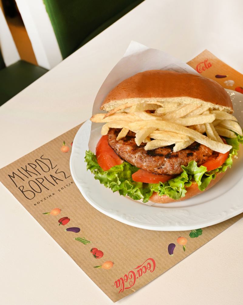 Κάθε φορά που επιλέγουμε το φιλόξενο αυτό εστιατόριο, γνωρίζουμε καλά πως θα απολαύσουμε σπιτικές γεύσεις της ποιοτικής, παραδοσιακής, ελληνικής κουζίνας. Μοντέρνος χώρος και το πιο ευγενικό και φιλικό προσωπικό απλώς επιτείνουν την αίσθηση της homemade διάθεσης, που αποτελεί τη βάση της φιλοσοφίας του. Με πιάτα που θυμίζουν το ιδιότυπο φαγητό της μαμάς, το μενού του αποτελεί την καλύτερη εκδοχή του comfort food. Τα μαγειρευτά του, η ποικιλία κρεατικών σχάρας και σούβλας και οι φρέσκες σαλάτες τους αποτελούν μικρές γευστικές ιστορίες του παρελθόντος, που έρχονται στο παρόν και φέρνουν μαζί τους μια ολόκληρη παράδοση. Σε αντίστοιχο πλαίσιο, δημιουργήθηκε και το Burger μπιφτέκι χοιρινό XXXL με ντομάτα, μαρούλι και πατάτες, για XXXL απόλαυση.