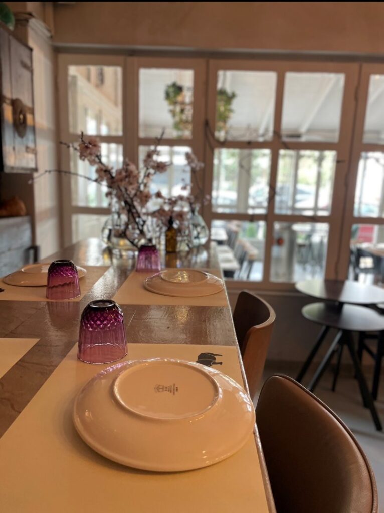 Η «μυσταγωγία» ξεκινάει από τον ίδιο τον χώρο που θυμίζει art nouveau αισθητικής σαλόνι σπιτιού, που συνδυάζει το casual με την άνεση τόσο απλά και καλαίσθητα. Ροτόντες και πάγκος φιλοξενούν ευχάριστα τους θαμώνες, όπως και ο προφυλαγμένος εξωτερικός του χώρος, που είναι το ίδιο cosy κάθε εποχή. Αν παρατηρήσετε τους τοίχους του, διακοσμούνται κυρίως από τους πίνακες και τα murals της μητέρας του, της κ. Ευδοκίας, που τον μύησε και στην τέχνη της μαγειρικής πριν χρόνια.