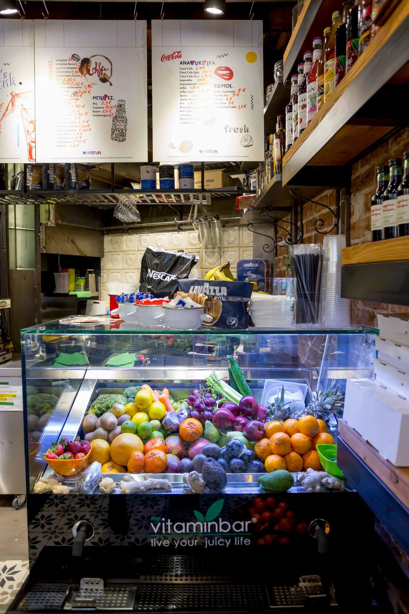 Χυμοί φρέσκοι από φρούτα και λαχανικά και ενεργειακοί. Από smoothies έως τους σύνθετους και εξαιρετικά νόστιμους που ακούνε σε ονόματα όπως Τζέλα, Στρούμφ, Μπαρούτ, Σαϊνης, Σαματάς, Οργανωτικός, Αστικός και Σου Μου Του. Με απίστευτες δυνατότητες και ποικιλία επιλογών στη πρώτη ύλη. Πλησιάστε με ευλάβεια το Vitamin Bar και δείτε τη διαδικασία δημιουργίας ενός εκπληκτικού χυμού χωρίς ίχνος φλούδας.