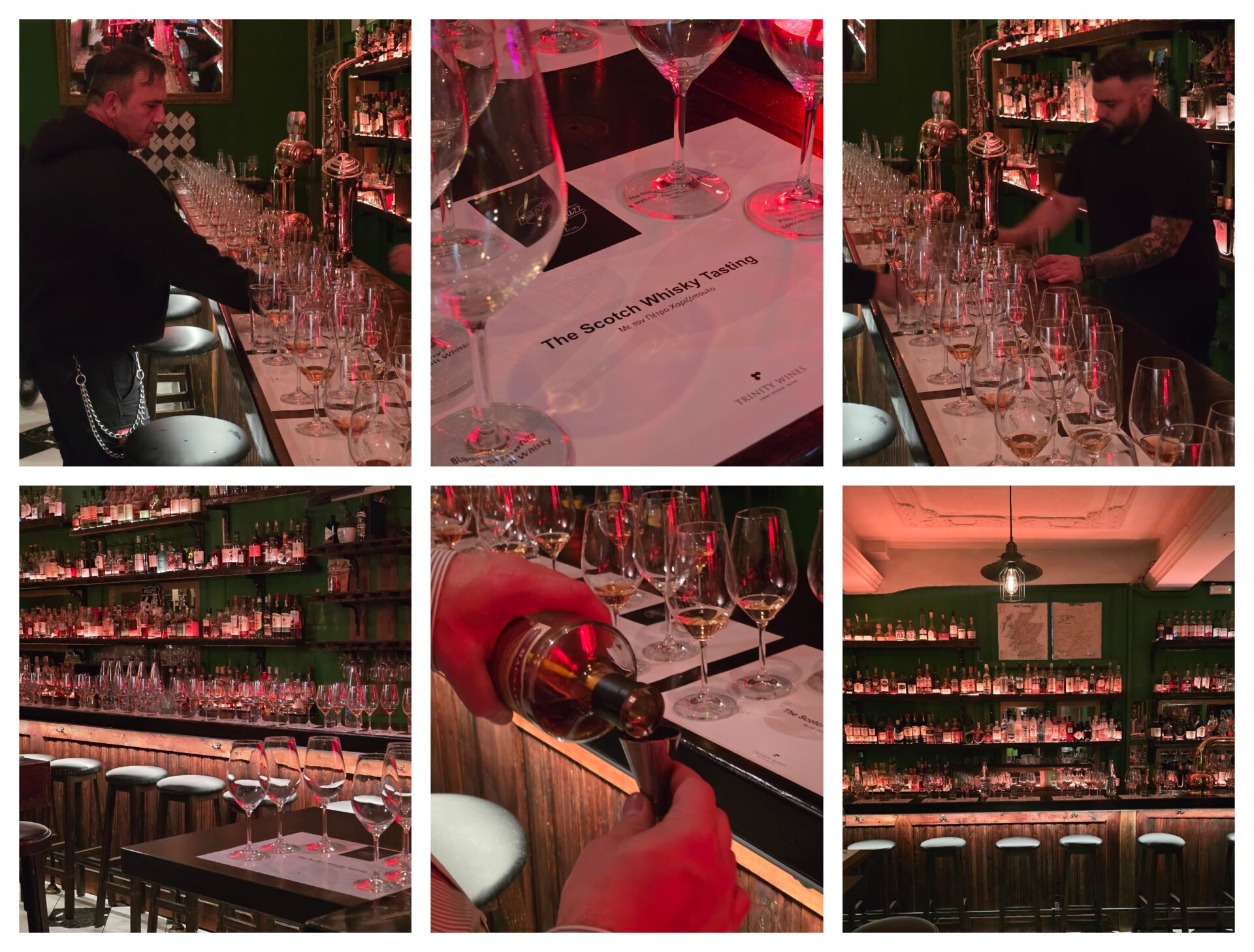Η παρουσίαση των έξι whiskey από την Trinity Wines ήταν μια βραδιά που είχε σχεδιαστεί για να αναδείξει το εύρος, την ιστορία και τις διαφορετικές εκφράσεις του σκωτσέζικου αποστάγματος. Ο Πέτρος Χαριζόπουλος, spirits specialist της εταιρείας, λειτούργησε όχι μόνο ως γευσιγνώστης, αλλά ως αφηγητής και οδηγός μέσα από τα τοπία, τα αποστακτήρια και τις μυρωδιές της Σκωτίας, αλλά και τις προσωπικές του αναμνήσεις και εμπειρίες που πάντα δίνουν τη ρομαντική νότα και το προσωπικό βίωμα σε αυτές τις βραδιές.