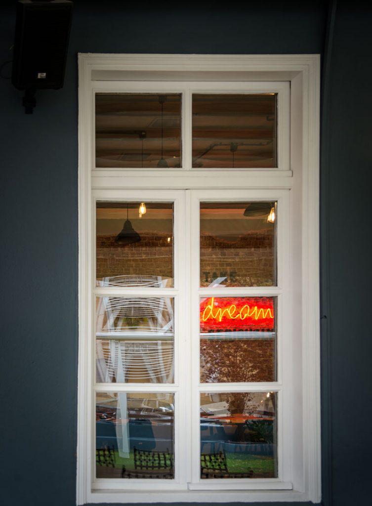 Το πρώτο πράγμα που θα δεις είναι το εντυπωσιακό bar, στο βάθος αριστερά το μάτι σου θα πιάσει την μοντέρνα βιβλιοθήκη, λίγο πιο κάτω η κουζίνα, δεξιά θα σου κλέψει το βλέμμα ένα δέντρο ελιάς και θα προχωρήσεις μπροστά στο κομμάτι του τοίχου που ξεχωρίζει. Θα σταθείς και θα διαβάσεις το απόφθεγμα που τοποθετήθηκε με neon light στα κεραμικά τούβλα που φανερώθηκαν πίσω από τους σοβάδες χρόνων. Το σύνθημα είναι ένα και σε προστάζει να ακολουθήσεις το όνειρό σου.