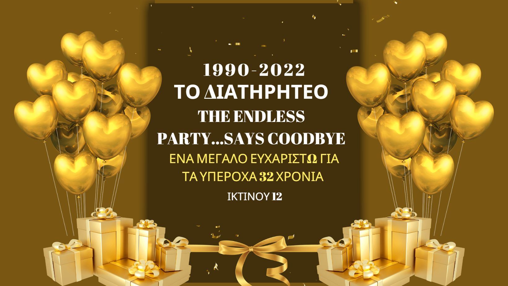 ΑΛΛΑ όπως λέει και το τραγούδι που σας αφιερώνουμε σας αποχαιρετάμε με αγάπη και είναι σίγουρο ότι κάπου θα ξαναβρεθούμε γιατί όπως γνωρίζετε όλες και όλοι σας το moto μας THE PARTY IS GOING ON AND ON……. Με πολύ αγάπη να θυμάστε τις όμορφες, μοναδικές στιγμές που περάσαμε όλοι ΜΑΖΙ στο σπίτι μας
