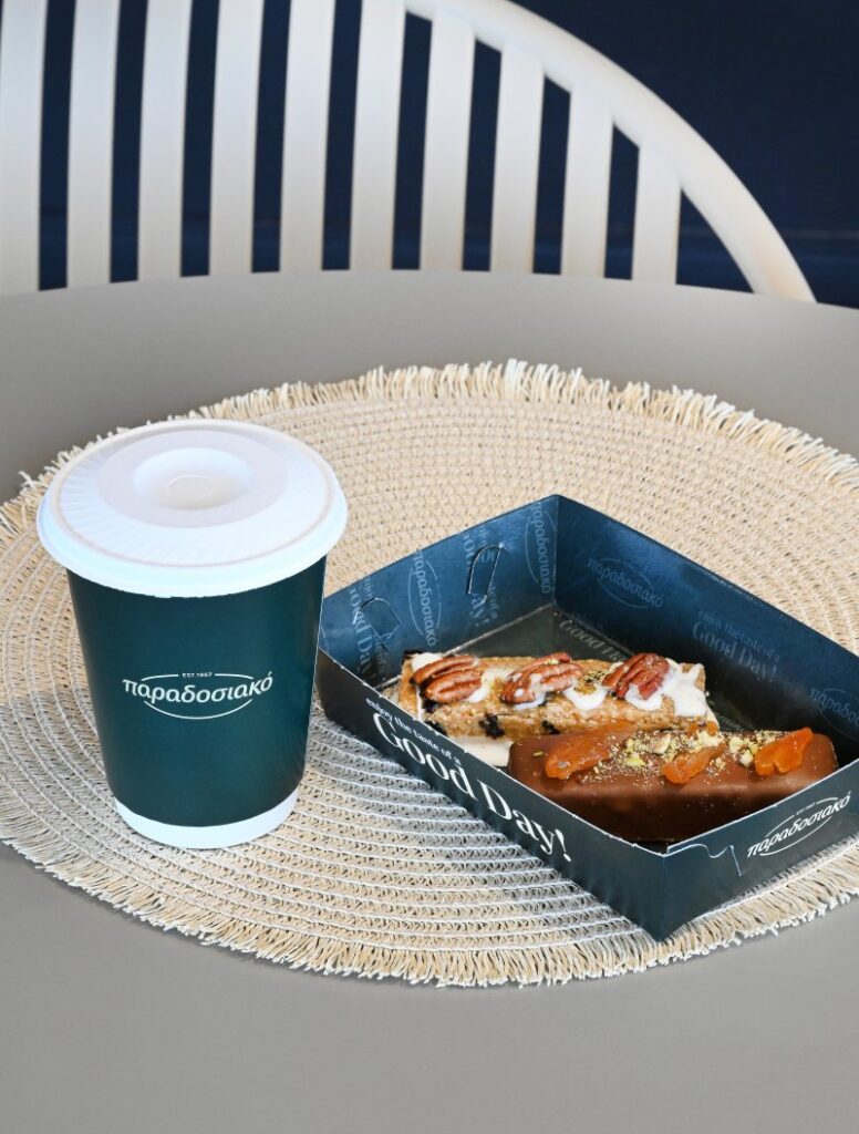 Παραδοσιακά, ο απόλυτος προορισμός είτε αν περνάτε απλά από μπροστά και προμηθεύεστε ένα sncak to go μαζί με τον καφέ σας είτε κάθεστε για να τα απολαύσετε, η αλήθεια είναι ότι η ποικιλία σε προϊόντα πιτοποιίας από παραδοσιακό φύλλο, σάντουιτς με πρωτότυπες γεύσεις, hot sandwiches και ατομικά γλυκά ικανοποιούν και τον πιο απαιτητικό. Γιορτάστε τη Διεθνή Ημέρα του Καφέ με έναν πολύ δυνατό -με έντονο άρωμα- Espresso και ισορροπήστε τον γευστικά με healthy bars με πεκάν, blueberry, λευκή σοκολάτα και γιαούρτι.