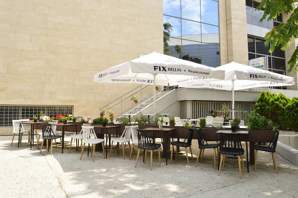 Ένας κανονικός κήπος στην καρδιά της πόλης με πολύχρωμα λουλούδια και λευκές μεγάλες ομπρέλες, με δροσερή χειροποίητη λεμονάδα, λαχταριστά σνακ και παγωμένα ποτήρια κρασί από διαλεχτές ποικιλίες, μοναδικά κοκτέιλ και έναν σταθερά εξαιρετικό καφέ.