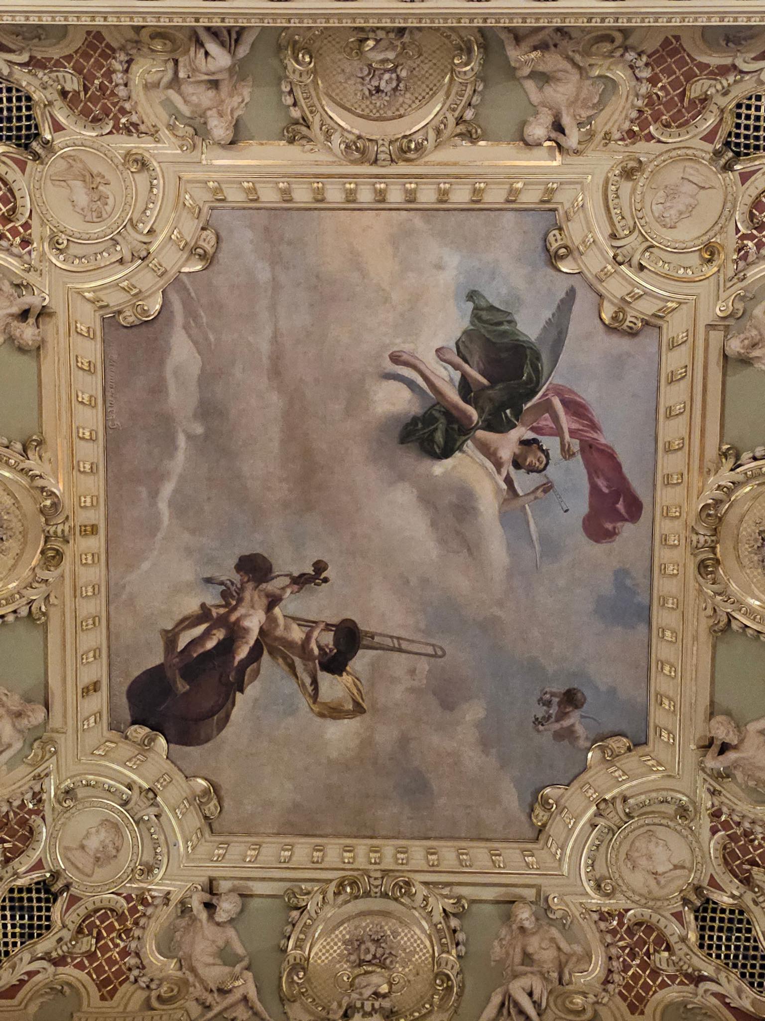 Η οροφή είναι διακοσμημένη με πίνακες του Γκούσζταβ Μάγκιαρ Μανχάιμερ και του Φρανζ Άισενχουτ, μερικοί από τους οποίους απηχούν σύμβολα που σχετίζονται με τις Ηνωμένες Πολιτείες της Αμερικής.