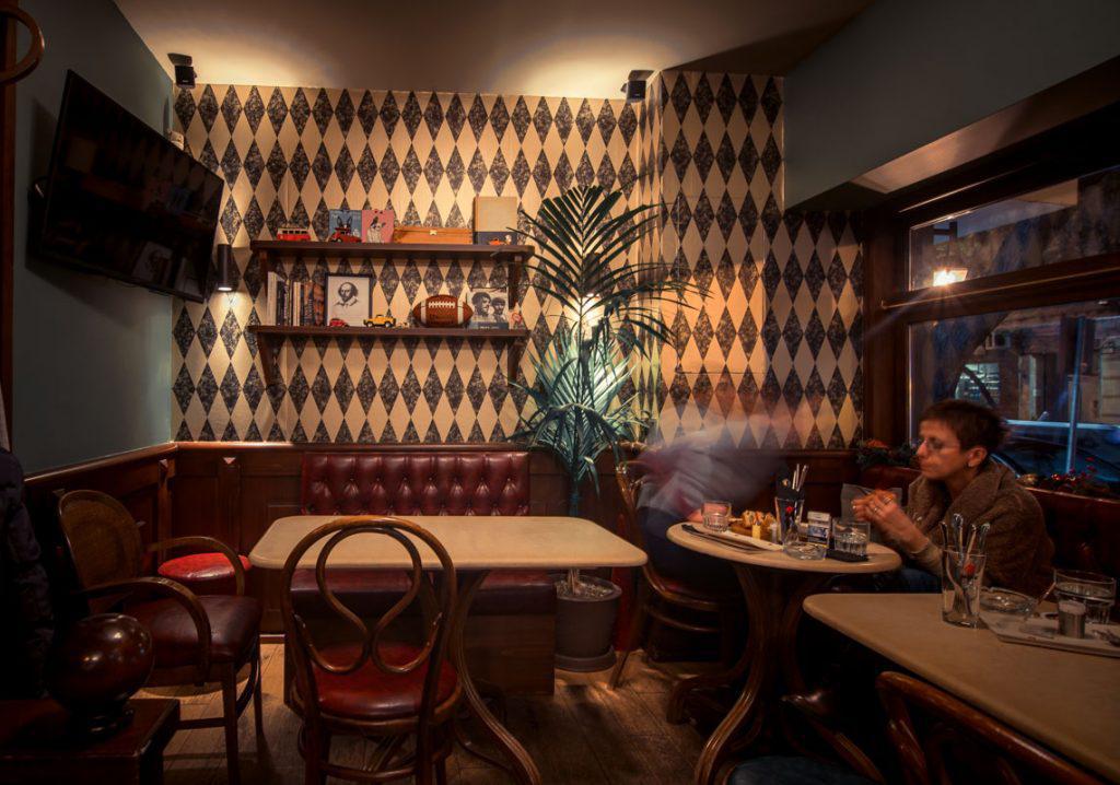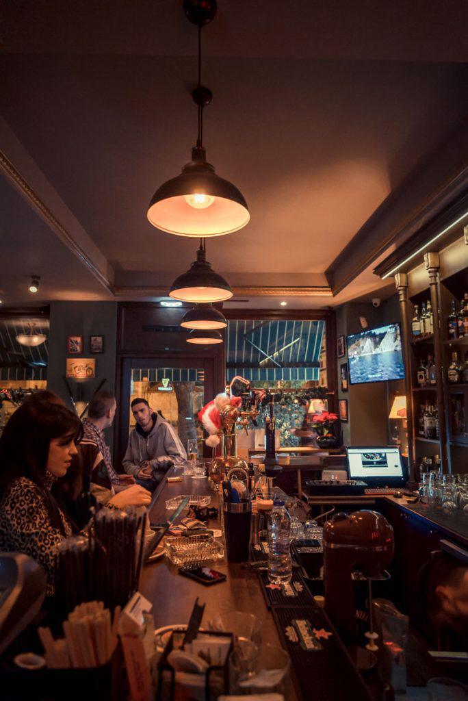 Ο χώρος είναι ζεστός, φιλικός, παρεϊστικος. Έχει αέρα μητροπολιτικό ως ένα κλασικό bar – στέκι hyppe περιοχής στην Ευρώπη αλλά και αύρα ατόφιας άνεσης από τη Θεσσαλονίκη. Καθώς τα κίτρινα φώτα του κέντρου λούζουν το τρίστρατο αστικό τοπίο και την εκκλησία μπροστά, μικρά παραμύθια της μέρας και της νύχτας ξετυλίγονται εντός της.
