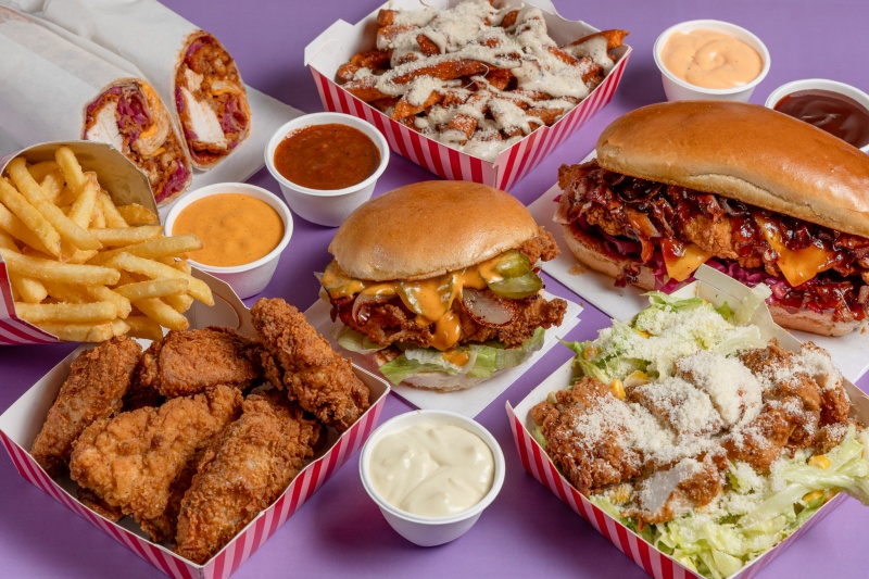 Μέσα από το μενού του αναδεικνύεται απόλυτος πρωταγωνιστής το κοτόπουλο σε όλες τις εκδοχές: chicken burgers, wraps, sandwiches, crunchy tenders, παράλληλα με sides, όπως οι epic γλυκοπατάτες τηγανητές με τρούφα & παρμεζάνα και homemade σαλάτες, όπως οι Ceasar’s και Coleslaw.