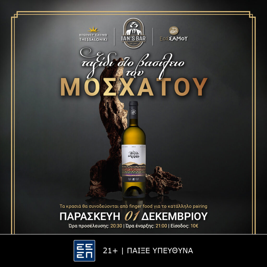 Το Ian’s Lounge Bar του Regency Casino Thessaloniki διοργανώνει υπό την επιμέλεια του ΕΟΣ Σάμου μία μοναδική γευσιγνωσία οίνου για τους λάτρεις του κρασιού και όχι μόνο.