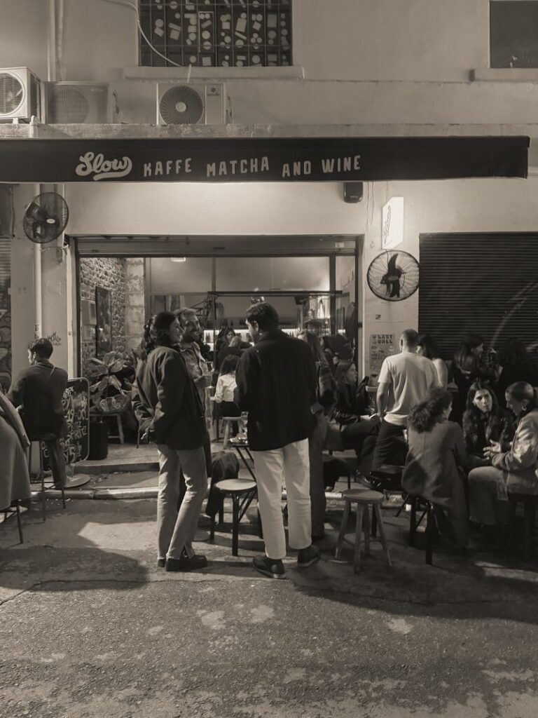 Υπάρχουν τα κλασικά coffee και wine bars και υπάρχει και το Slow. Μακριά από νόρμες και συμβάσεις. Ένας χώρος που αποπνέει ελευθερία, άνεση και coziness! Ξεκίνησε να λειτουργεί πριν ενάμιση χρόνο με τη διάθεση να είναι ένα all day spot για καφέ και κρασί κι έγινε αγαπημένη συνήθεια, σε μια γειτονιά με έντoνα vibes. H casual urban αισθητική του διαθέτει μια φινέτσα, το τούβλο του δίνει μια industrial εικόνα, ενώ η ντισκόμπαλα και η μπασκέτα δίπλα στο bar προδιαθέτουν για το πιο cool περιβάλλον downtown.