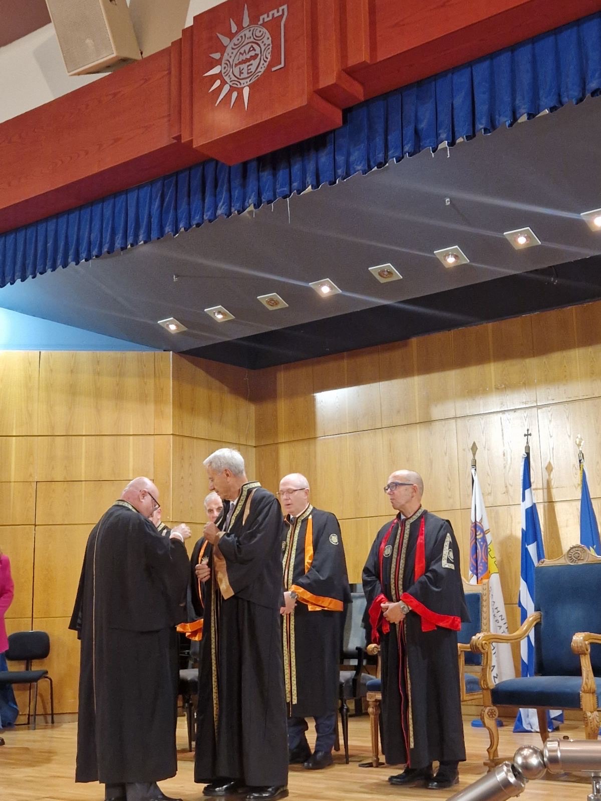 Σε μια τελετή γεμάτη εικόνες, γεύσεις και μυρωδιές από αμπελώνες, ο οινοποιός Βαγγέλης Γεροβασιλείου αναγορεύτηκε Επίτιμος Διδάκτορας του Τμήματος Βαλκανικών, Σλαβικών και Ανατολικών Σπουδών του Πανεπιστημίου Μακεδονίας, για την προσφορά του στην επιχειρηματική δραστηριότητα, αλλά και τη συνεισφορά του στην κοινωνία, την τέχνη και τον πολιτισμό.