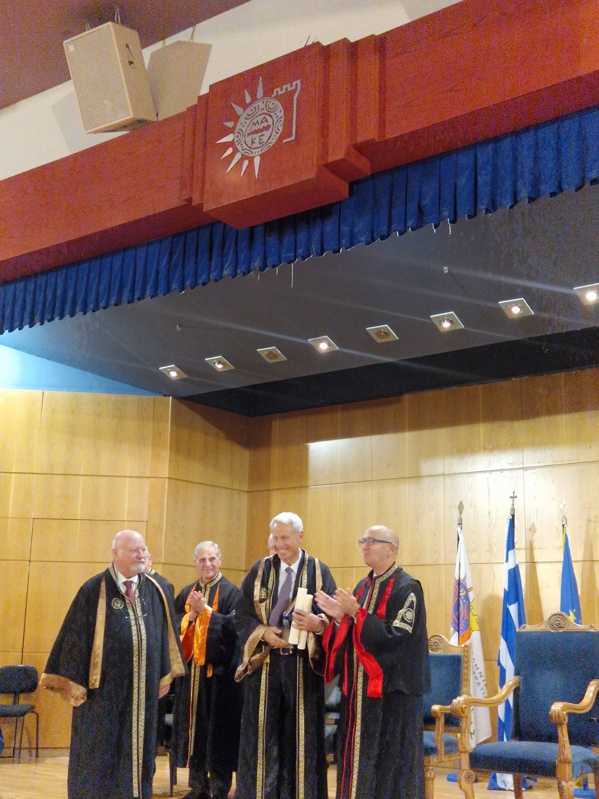 Πρόσθεσε δε ότι «ο τίτλος αυτός αναδεικνύει τη στενή σχέση της παιδείας με την παραγωγή», ενώ χαρακτήρισε τιμή του να συνδέεται η δική του διαδρομή με το όραμα και τη δράση ενός δημόσιου Πανεπιστημίου, όπως το Πανεπιστήμιο Μακεδονίας.