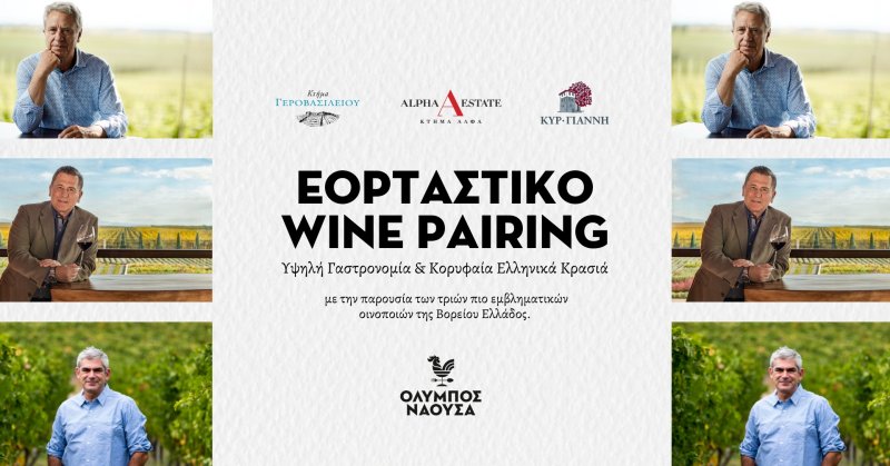 Το Όλυμπος Νάουσα σε προσκαλεί σε ένα εορταστικό wine pairing, με την παρουσία των τριών πιο εμβληματικών οινοποιών της Βορείου Ελλάδος.