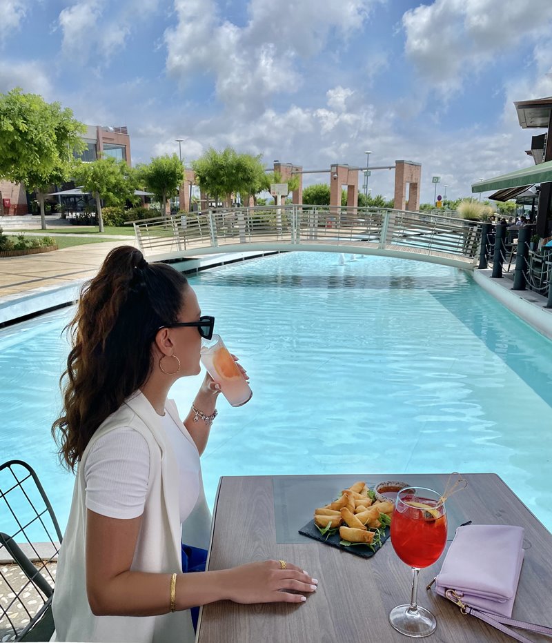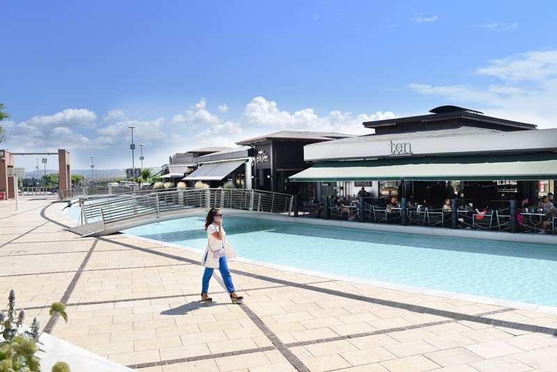 Παίρνει σίγουρα 10΄, καθώς κατάφερε να φέρει κάτι φρέσκο στη διασκέδαση του εμπορικού κέντρου. Μεγάλες γυάλινες επιφάνειες δίπλα στη δροσιά της πισίνας και μια αυλή να απλώνεται μπροστά, όπου ηρεμεί η ματιά. Εδώ, έχει κάτι για κάθε στιγμή της ημέρας και όλες τις απαιτήσεις σε φαγητό και ποτό.