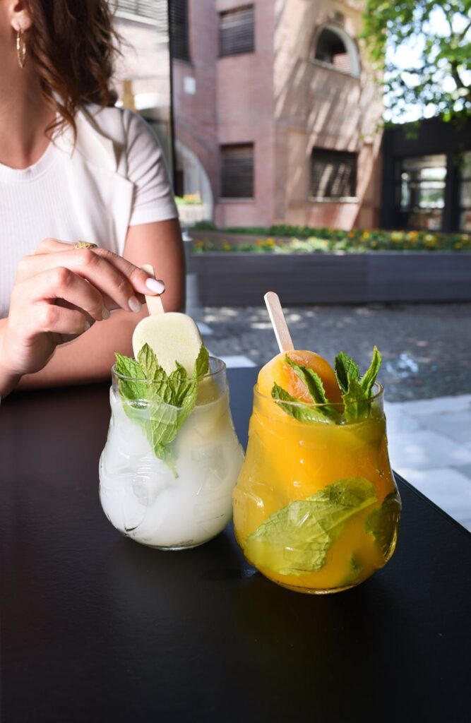 Mango Popsicle Mojito με Havana Club Añejo 3 Años, πουρέ mango, σιρόπι mango, φρέσκος χυμός λεμονιού και lime, νέκταρ αγαύης, σόδα και φύλλα δυόσμου. Σερβίρεται με Mango Popsicle.