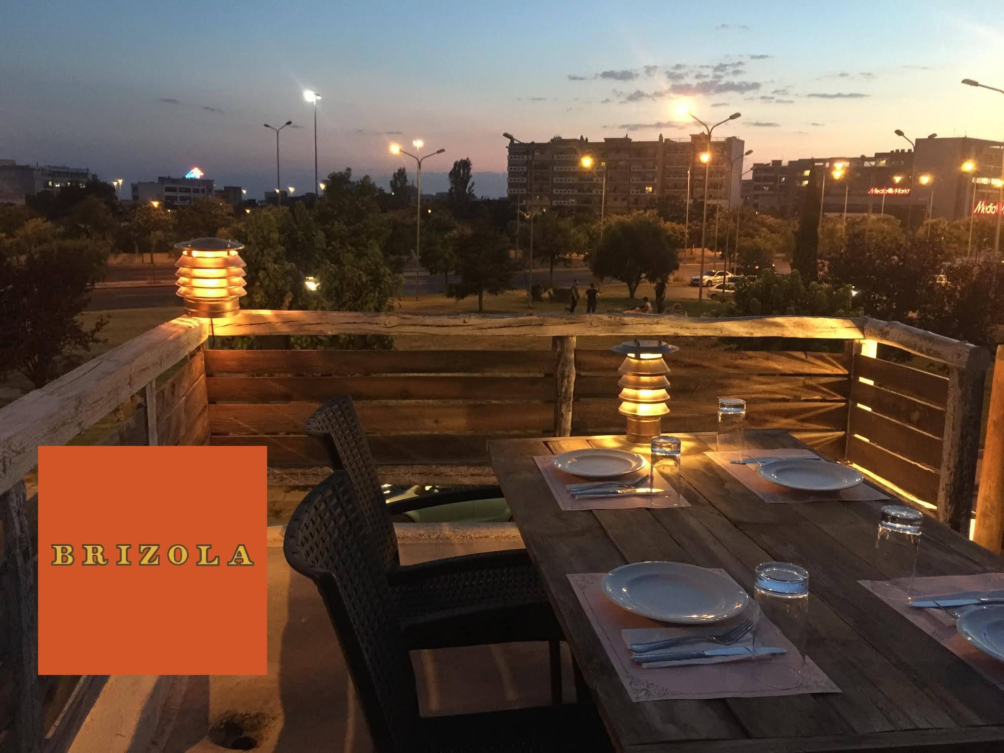 Και στην ίδια την ταράτσα μια γοητευτική ησυχία, κουβέντες από παρέες που μοιάζουν να απολαμβάνουν αυτό το αναπάντεχο αστικό δώρο και γεύσεις. Μια δροσερή Grazy Donkey από τη Σαντορίνη στο ποτήρι μας, πραγματική απόλαυση και μερικά πιάτα από την κάρτα της αποθέωσης του κρέατος που η Brizola μας έχει συνηθίσει από το χειμώνα που άνοιξε. Ξύλο και τσιμέντο και ένα δέντρο που το έσκασε και έφτασε εδώ ψηλά.
