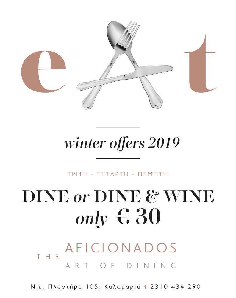 Αποτελεί τη ναυαρχίδα του fine dinning στην παραλία της Καλαμαριάς. Με ενδιαφέρουσες προτάσεις που ανανεώνουν διαρκώς την κάρτα του, εξαιρετικά event food and wine pairing και διαρκείς εκπλήξεις όλο το χρόνο υποδέχεται τους πιο χειμωνιάτικους μήνες της χρονιάς με μια έκπληξη: Ένα πλήρες dine μενού κάθε Τρίτη, Τετάρτη και Πέμπτη με 30 ευρώ το άτομο! Σε δυο εκδοχές. Μία με κρασί και μία χωρίς.
