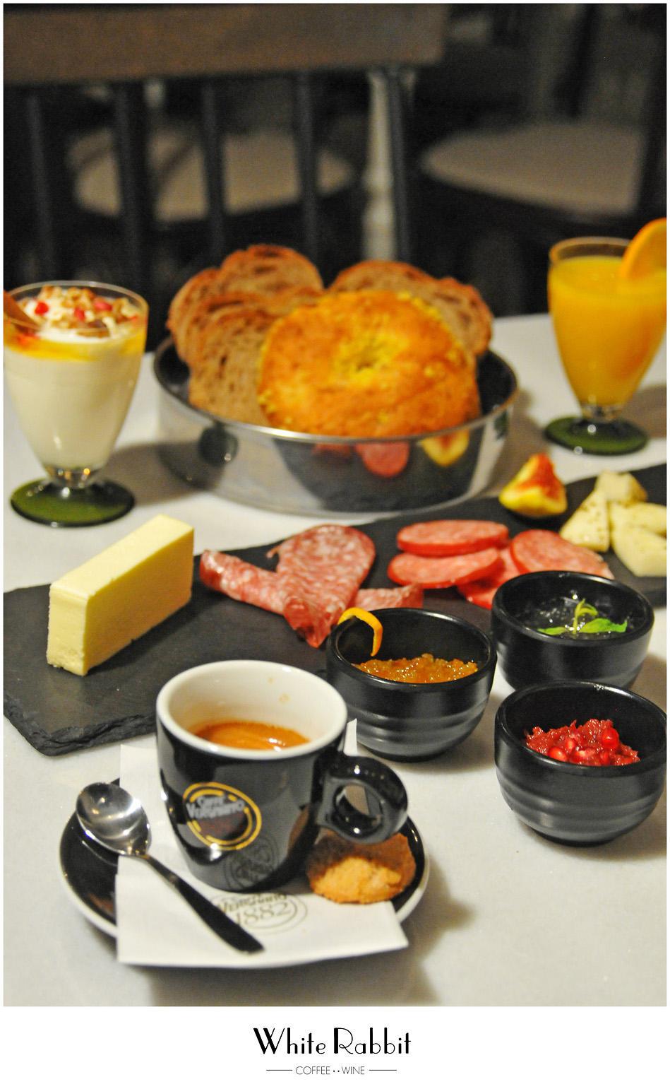 Το White Rabbit λειτουργεί από το πρωί ως ο ιδανικότερος τρόπος να ξεκινήσεις την μέρα σου με μία κούπα καλού αρωματικού καφέ, διαβάζοντας ή απλά χαλαρώνοντας στην ήσυχη γειτονιά του.