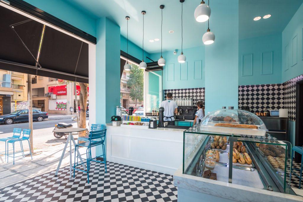 Κάνοντας μια στάση για λίγο σε ένα από τα λευκά τραπέζια, στη νέα γειτονιά του, αφημένοι στο χαρακτηριστικό black and white σύμπαν του με τις παλ γαλάζιες νότες, κρατώντας στα χέρια έναν από τους πιο ντελικάτους take away coffee στην πόλη.