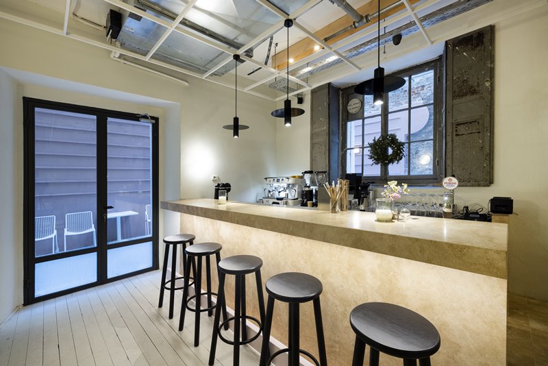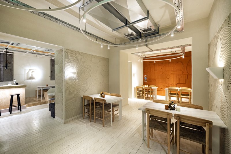 Εδώ, σε υποδέχεται η εικόνα της σχεδιαστικής ομάδας Post Spectacular Office, η οποία μετουσίωσε τις λειτουργικές ανάγκες του χώρου σε κάτι άρτιο αισθητικά. Με κυρίαρχα στοιχεία από τις ακτές της Μεσογείου, είναι σαν να παρατηρείς τα πράγματα μέσα από ένα κεραμικό δοχείο, ενώ η λιτή προσέγγιση αποτυπώνει τη έλλειψη για τον «φόβο κενού», αφού το κενό παραμένει μέρος του συνόλου και συμπληρώνει όσα υφίστανται. Έτσι, σ’ ένα project με εμπειρικό κι αισθησιακό χαρακτήρα, το ντιζάιν αποκτά νόημα.