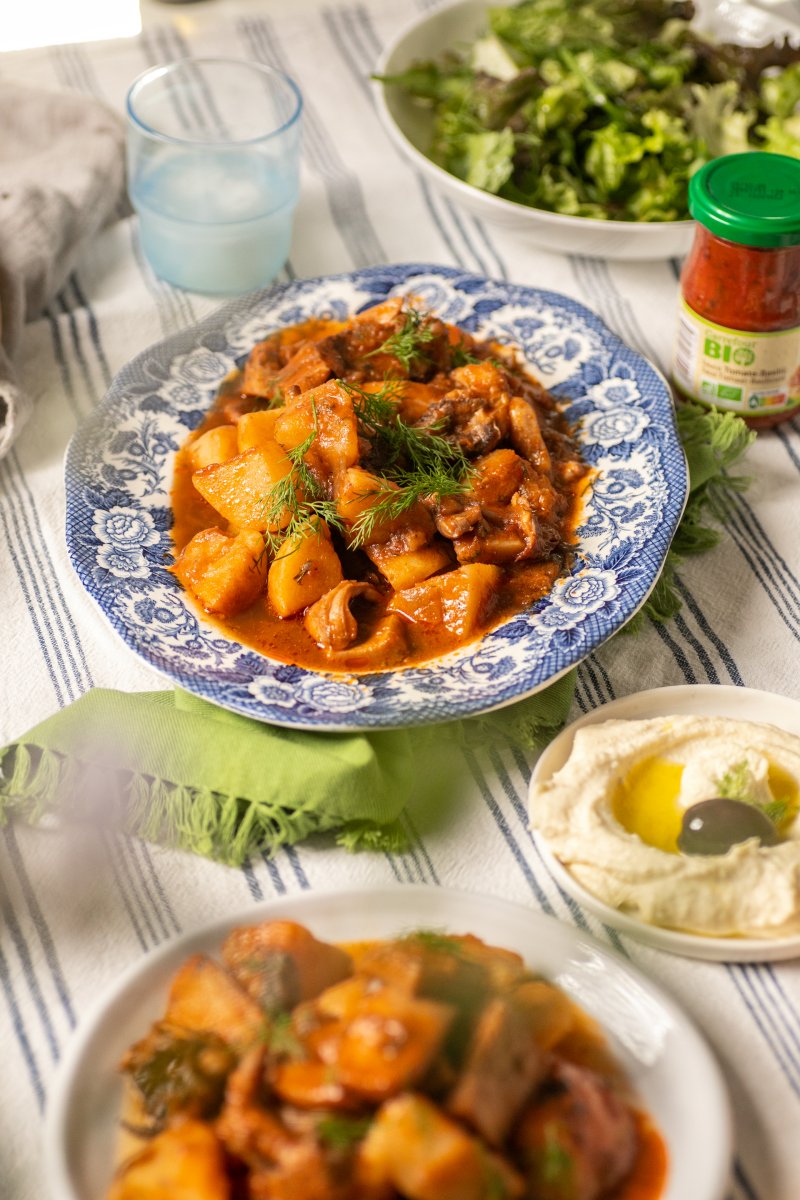 Σουπιές με πατάτες κοκκινιστές
