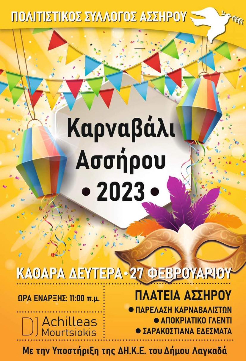 Οι καρναβαλικές εκδηλώσεις στον Δήμο Λαγκαδά κλείνουν την Καθαρά Δευτέρα 27 Φεβρουαρίου στην Άσσηρο, όπου η καρναβαλικές εκδηλώσεις επιστρέφουν μετά από αρκετό καιρό.