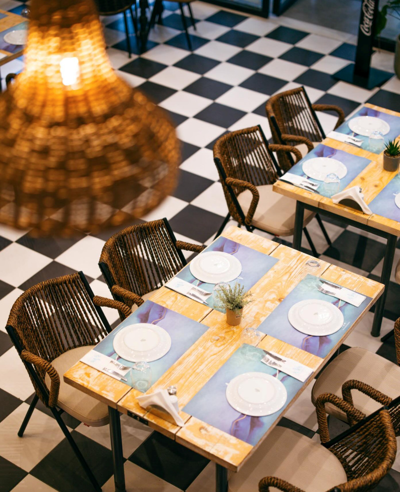 - Η απόλυτη new bohemian αισθητική που συνδυάζει την ψάθα, το ξύλο, το πράσινο, την εντυπωσιακή σκακιέρα με το υπέροχο φως δημιουργεί το πιο καλαίσθητο αποτέλεσμα εστιατορίου σε όλη την περιοχή.