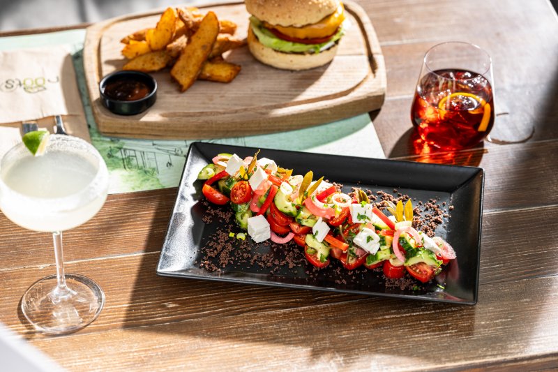 - Το μενού ικανοποιεί ακόμη και τους πιο απαιτητικούς της γεύσης. Οι vegan επιλογές, αλλά κι ένας gluten free κατάλογος δεν αφήνει κανέναν δυσαρεστημένο. Η ενημερωμένη λίστα κρασιών, από μικρούς και μεγάλους αμπελώνες, και φυσικά, τα premium cocktails και ποτά του μπαρ, αν επιθυμείς να συνοδεύσεις το γεύμα σου ή απλά να απολαύσεις το ποτό σου.