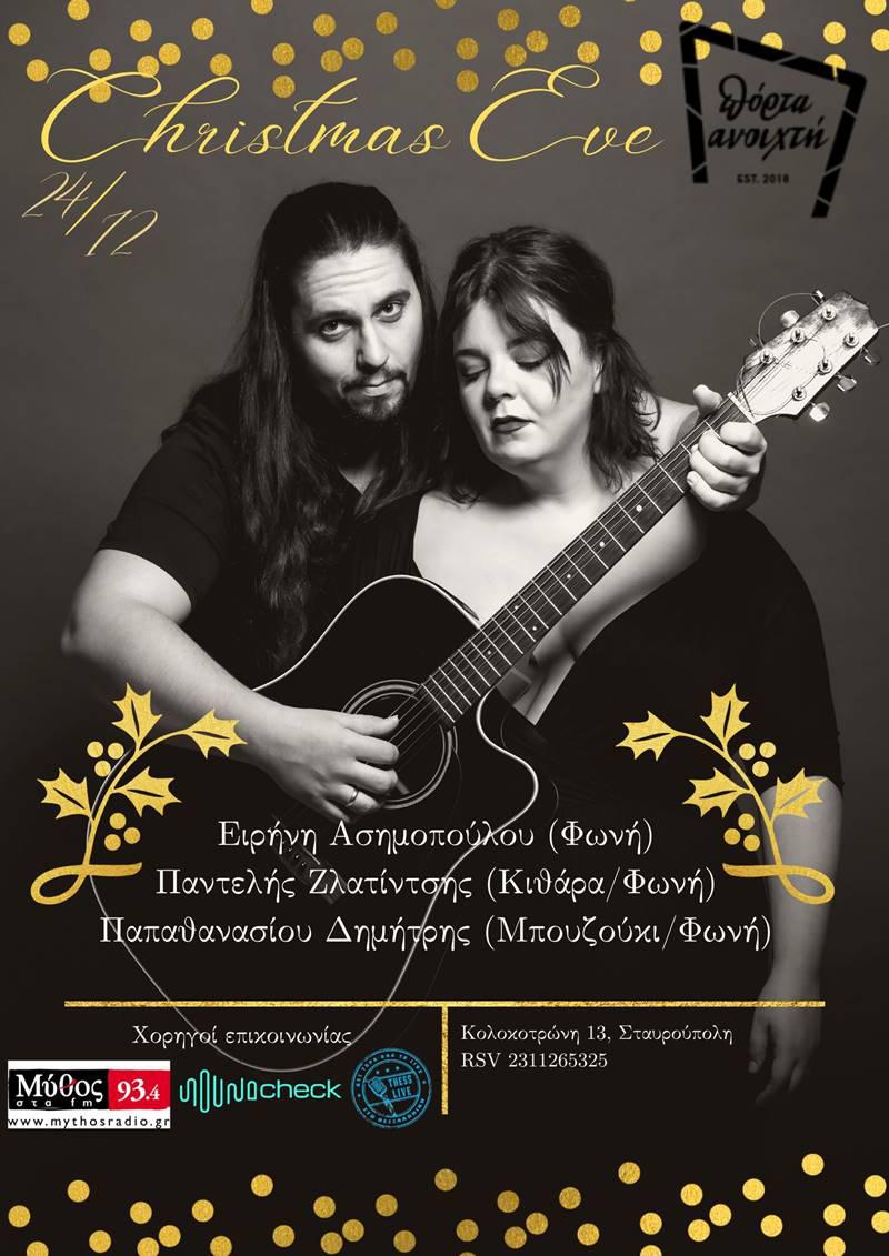 Με ένα υπέροχο μενού και ένα μοναδικό live σας περιμένει η Πόρτα Ανοιχτή την Παραμονή Χριστουγέννων. Διασκεδάστε παρέα με την Ασημοπούλου Ειρήνη, τον Pantelis Zlatintsis και τον Δημήτρη Παπαθανασίου, με ένα εορταστικό πρόγραμμα, που θα απογειώσει την διάθεσή σας και ένα μοναδικό μενού δια χειρός Yiannis Arabatzis, που θα σας μείνει αξέχαστο.