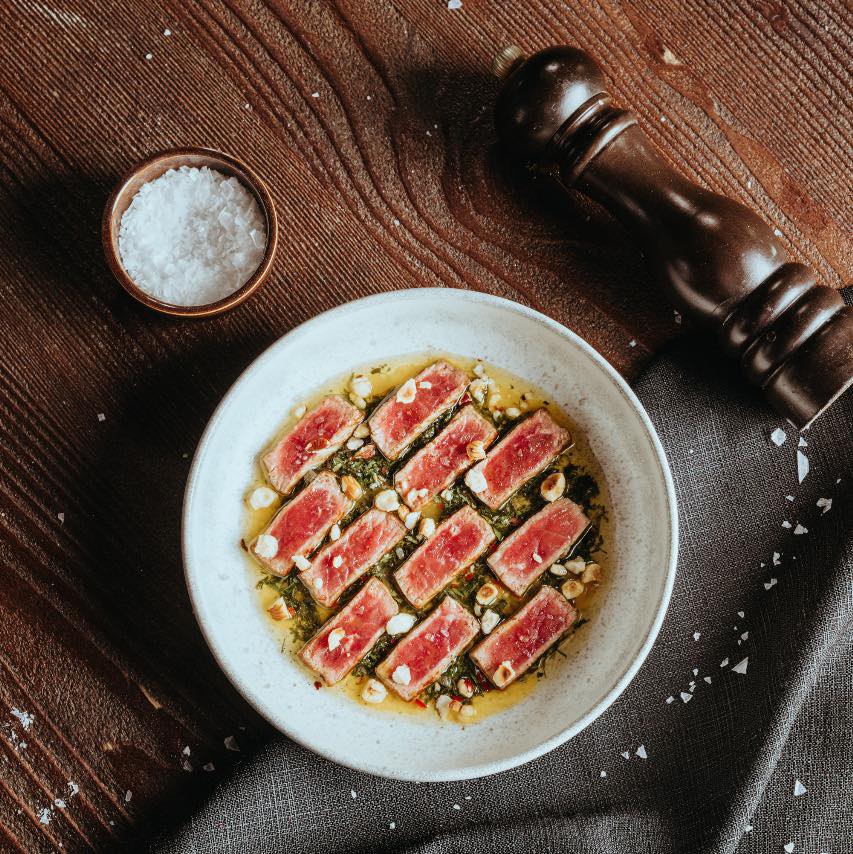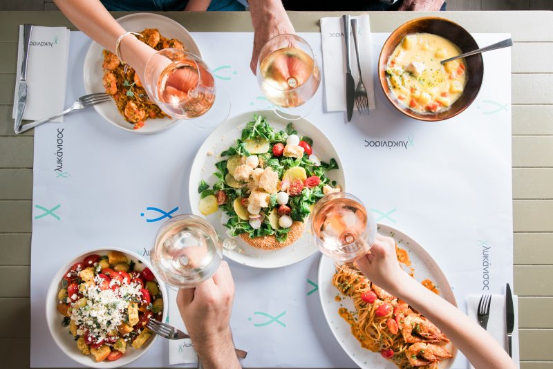 Τα θαλασσινά πρωταγωνιστούν, οι ωμές κοπές και τα φρέσκα ψάρια από καΐκια Χαλκιδικής, οι δημιουργικές σαλάτες, τα ζυμαρικά.