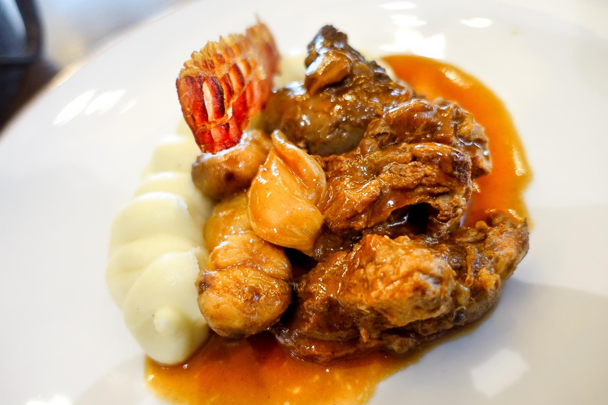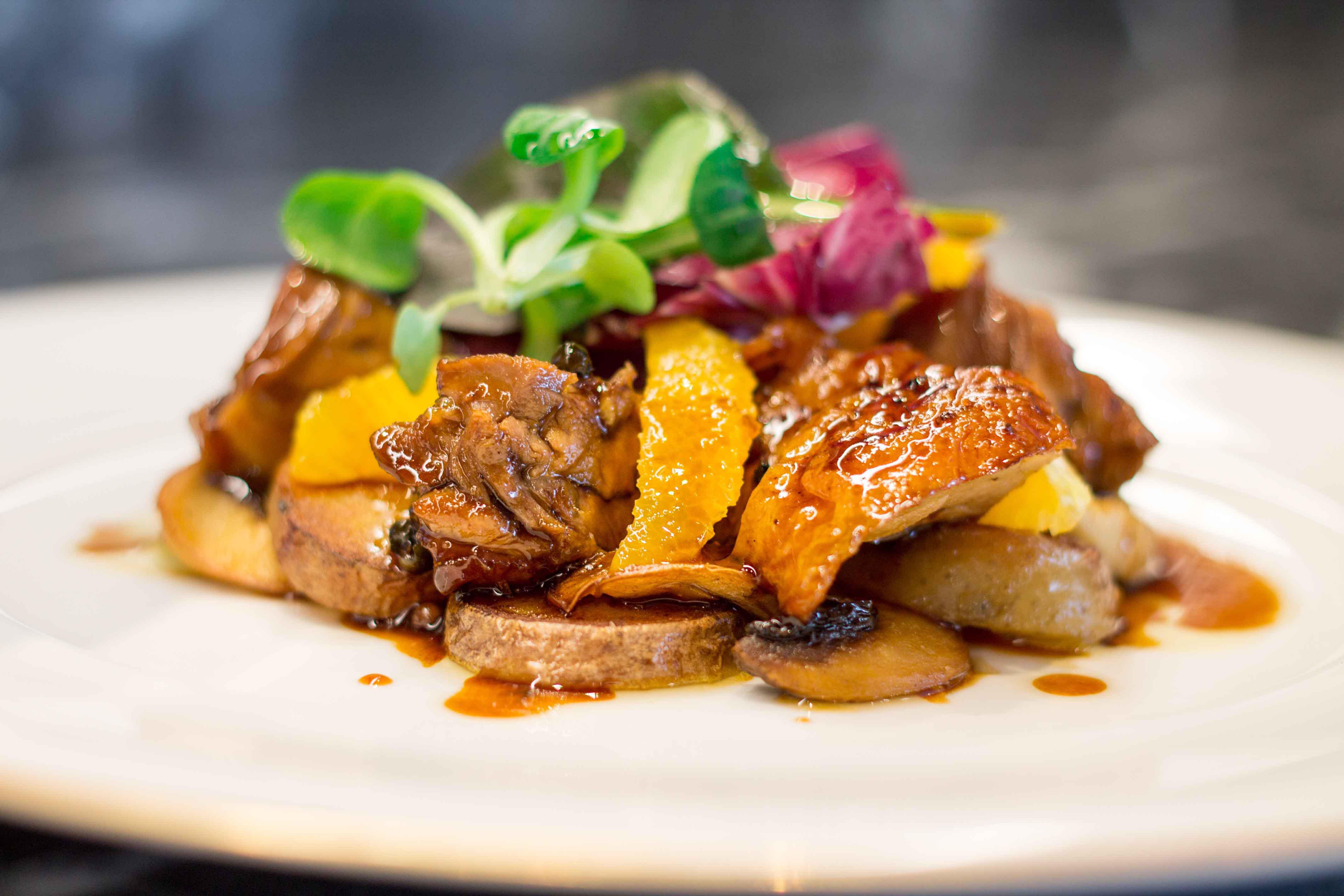 Υπέροχη ψητή πάπια με πορτοκάλι, ρέβες και πράσινο πιπέρι σε δυο στάδια. Απλά εμπειρία! Ζαρκάδι ραγού με σπιτικά φτιαγμένες ταλιατέλες μανιτάρια τρούφα και shimeji στο πλάι.