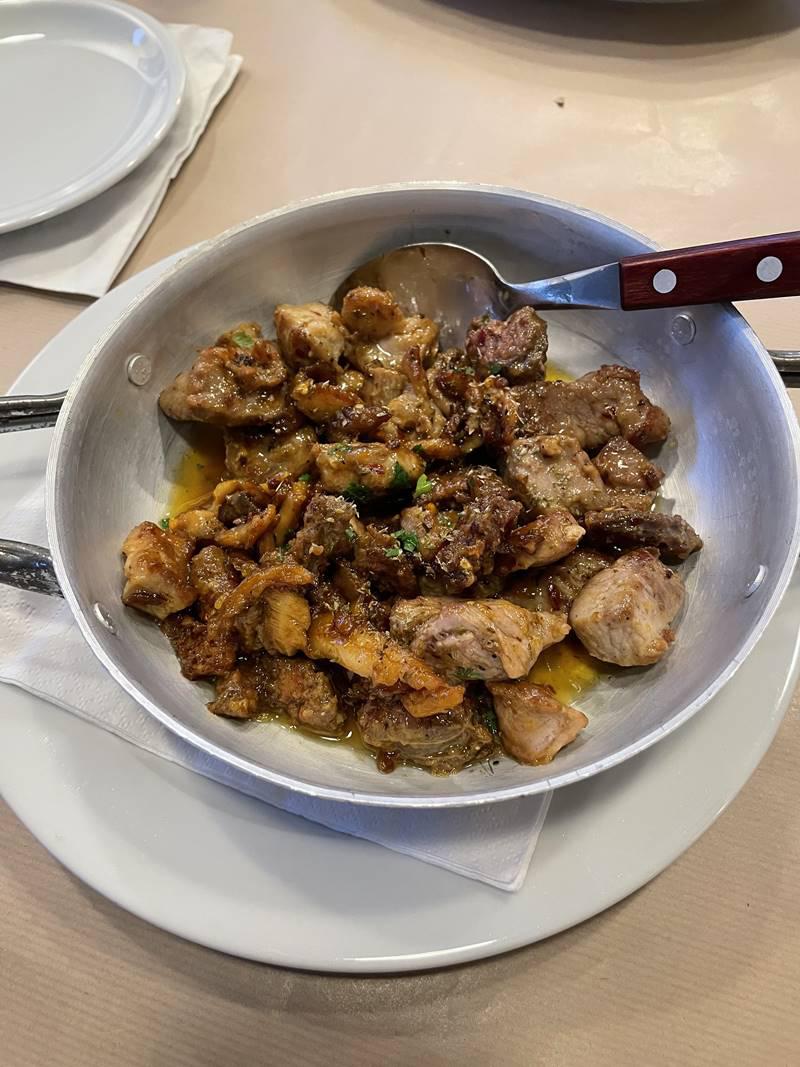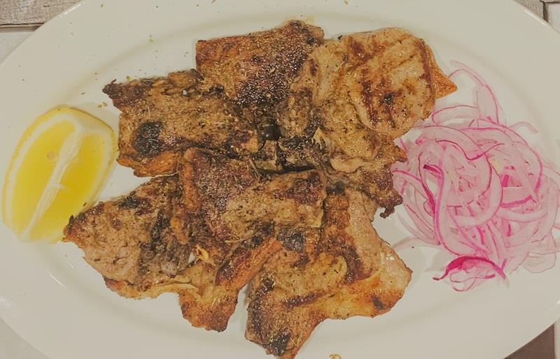 Εκτός από τα ζουμερά μπιφτεκάκια και τα σουτζουκάκια που είναι δυο συνταγές όπου όμοιες δεν θα βρεις, πρέπει να δοκιμάσετε οπωσδήποτε τα χοιρινά μπριζολάκια στα κάρβουνα, και χοιρινό γάστρας αν τύχει και υπάρχει εκείνη την ημέρα, όπως και το συκώτι σχάρας.