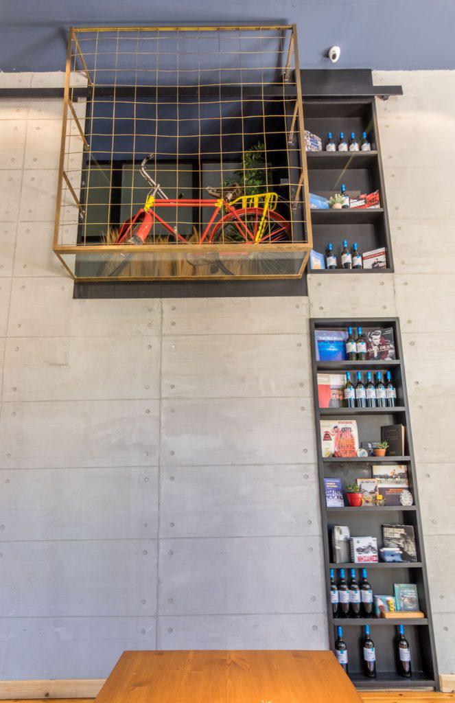 Περνώντας την ξύλινη κομψή του πόρτα και προχωρώντας στο εσωτερικό του θα σου ανοιχτεί ένας κόσμος μίνιμαλ αντιθέσεων, σκέτο παιχνίδι για το μάτι και τις αισθήσεις. Τα παράθυρα περιμετρικά του που αφήνουν απρόσκοπτα το φως να λούσει τον χώρο, το μεγάλο μπαρ που δεσπόζει στο κέντρο, τα βίντατζ ποδήλατα στον τοίχο και τα ιδιαίτερα τραπέζια του, τα έντονα clean χρώματα σε λεπτομέρειες, οι ρετρό αναφορές στον κινηματογράφο -τον αγαπούν ιδιαίτερα εδώ- λεπτομέρειες που επιμελήθηκαν μία προς μία η ομάδα του, συνθέτουν το απόλυτο μητροπολιτικό place to be στην πόλη.
