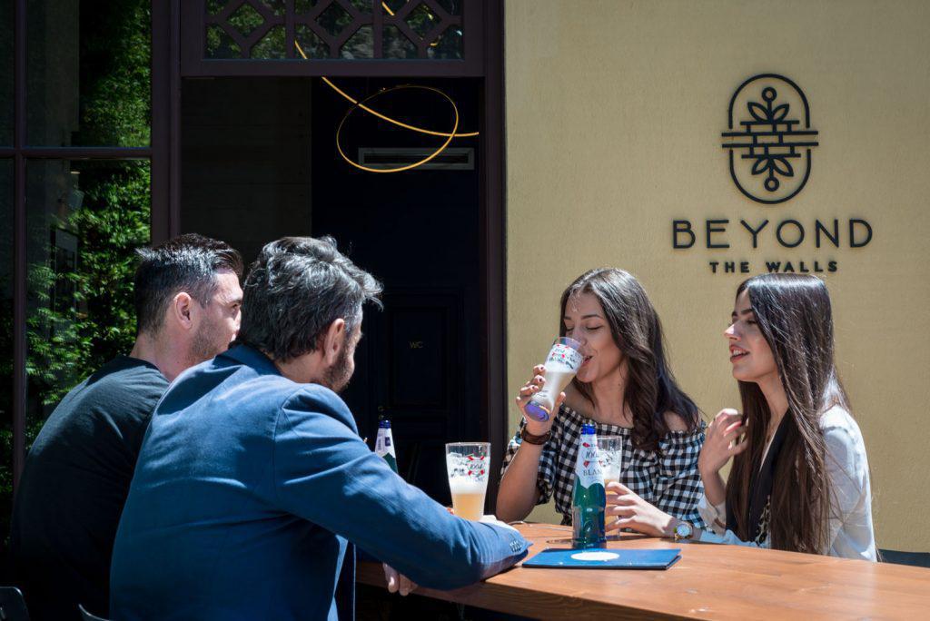 Με την κοσμική του αύρα έκδηλη σε κάθε λεπτομέρεια, το Beyond The Walls σερβίρει από το πρωί φανταστικό καφέ, δυναμωτικά σνακ, θεϊκό brunch και πιάτα, πρόκληση για τον ουρανίσκο μέχρι και αργά το βράδυ για εξωτικά κοκτέιλ, εξαιρετικά κρασιά και ολιστικές υψηλές γαστρονομικές απολαύσεις.