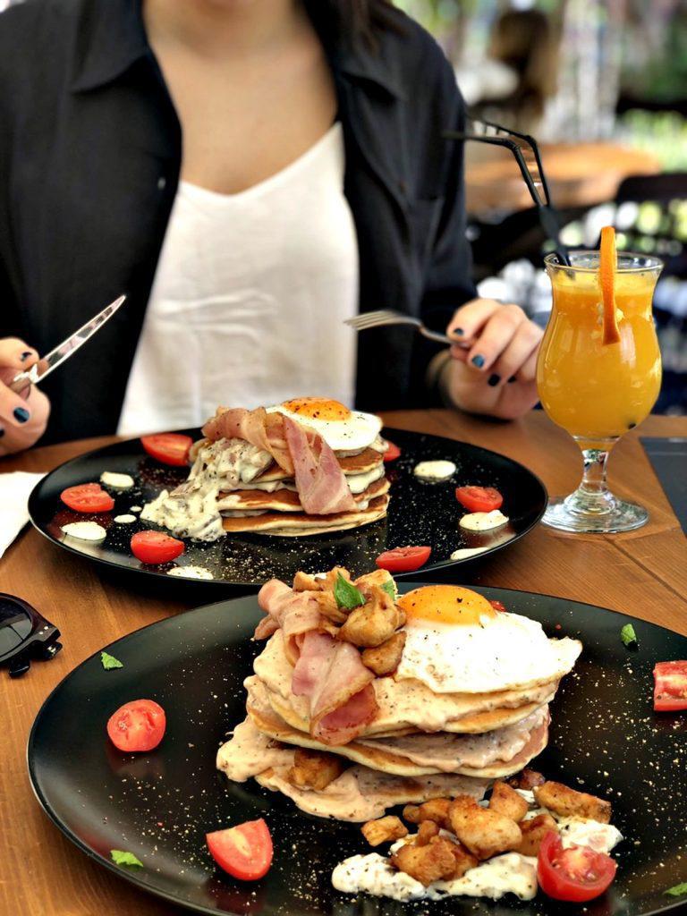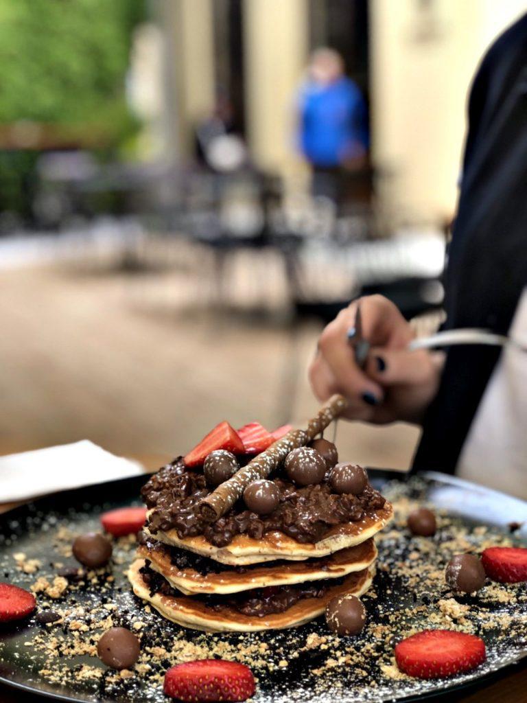 Αξίζει να σημειωθεί πως οι επιλογές είναι λαχταριστές ακόμα και για χορτοφάγους με πιάτα που ξεχωρίζουν. Σημειώστε το Pancake τριών στρώσεων με σοκολατένια homemade κρέμα πατισερί, λευκή σοκολάτα, τρίμα μπισκότου πτι μπερ και raspberries. Α, και τα γλυκά του! Κόλαση!