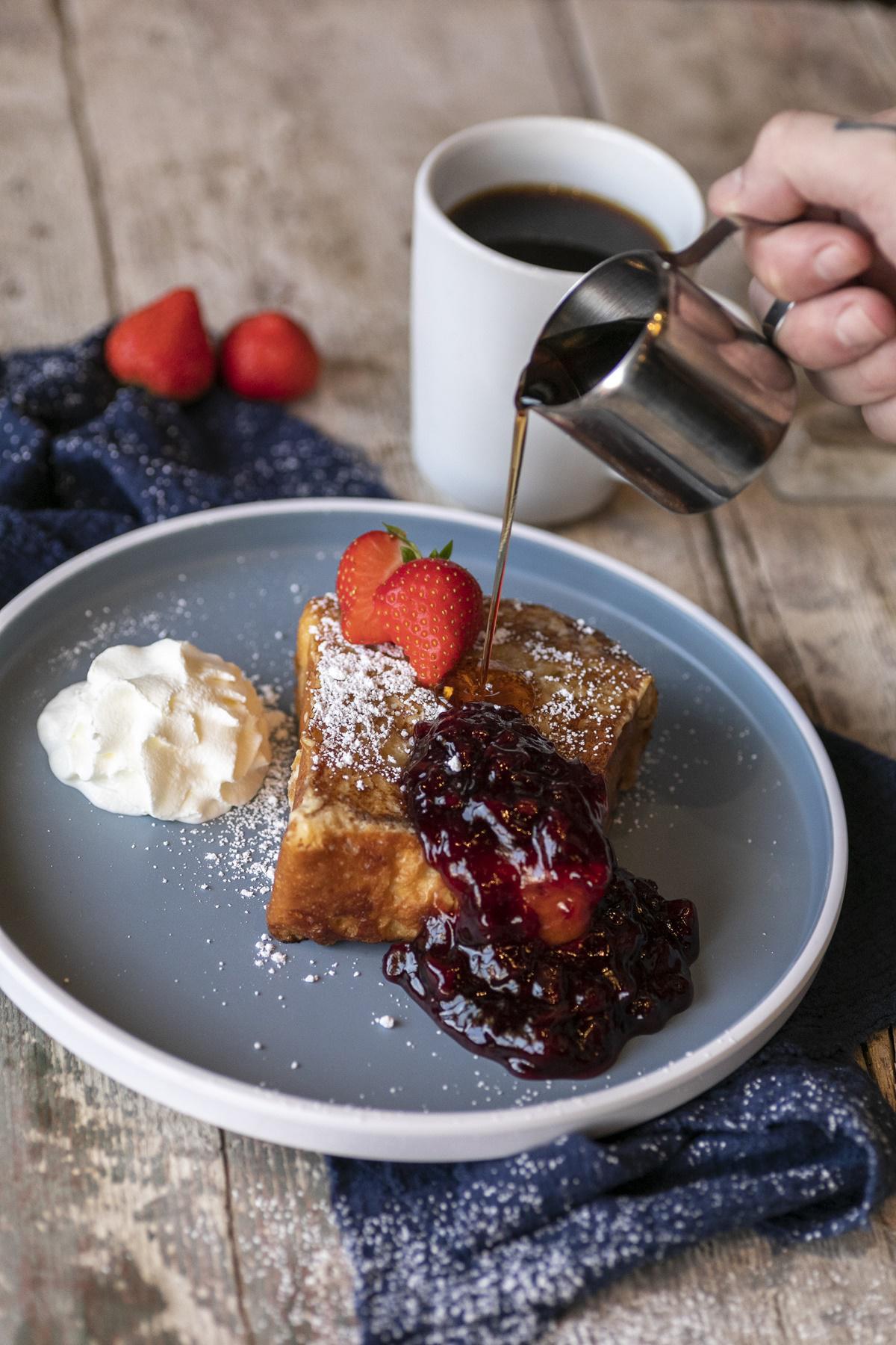 Και μια τελευταία έκπληξη το αναπάντεχο γλυκό French toast με maple syrup μαρμελάδα με φρούτα του δάσους και σαντιγί!