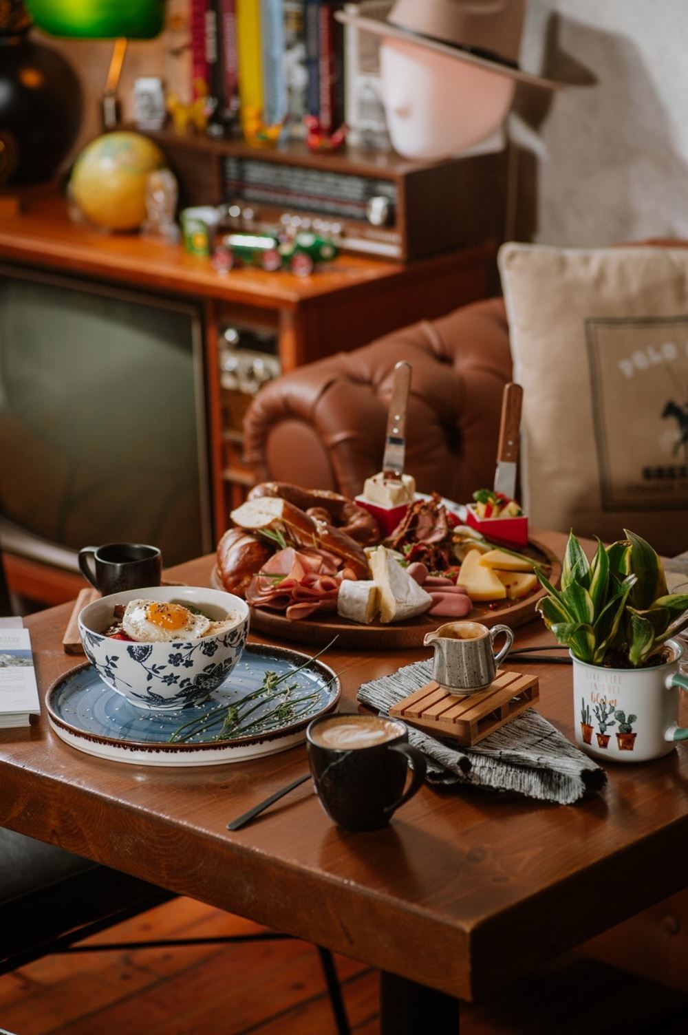 Αν έχεις διάθεση για πιο πλούσιες γεύσεις, παράγγειλε Pretzel με αβγά βραστά, πατατοσαλάτα, βούτυρο, Ementaler, Camembert, λουκάνικα Φρανκφούρτης, μπριζόλα καπνιστή και σαλάμι, κάποια ομελέτα με ολόφρεσκα υλικά ή ρολλάκια τυριών με μέλι. Μεγάλη ποικιλία θα βρεις σε φανταστικά pancakes -αλμυρά και γλυκά-, τοστ και κέικ. Αν είστε 2, ζητήστε κάποιο platter: Thessalonikis Eye με γεμιστό κουλούρι Θεσσαλονίκης, Yogurt Boat, τσουρέκι τηγανητό με σος γιαουρτιού, άγρια φρούτα και μαρμελάδα ή Vegeterian με σοτέ λαχανικά. Μη φύγεις αν δε δοκιμάσεις λίγη τηγανητή ζύμη Kaiserschmarrn με σπιτική μαρμελάδα άγριων φρούτων ή τα πιο healthy smoothie bowls Wild Fruits και Blue Mermaid, που θα σε ξετρελάνουν.