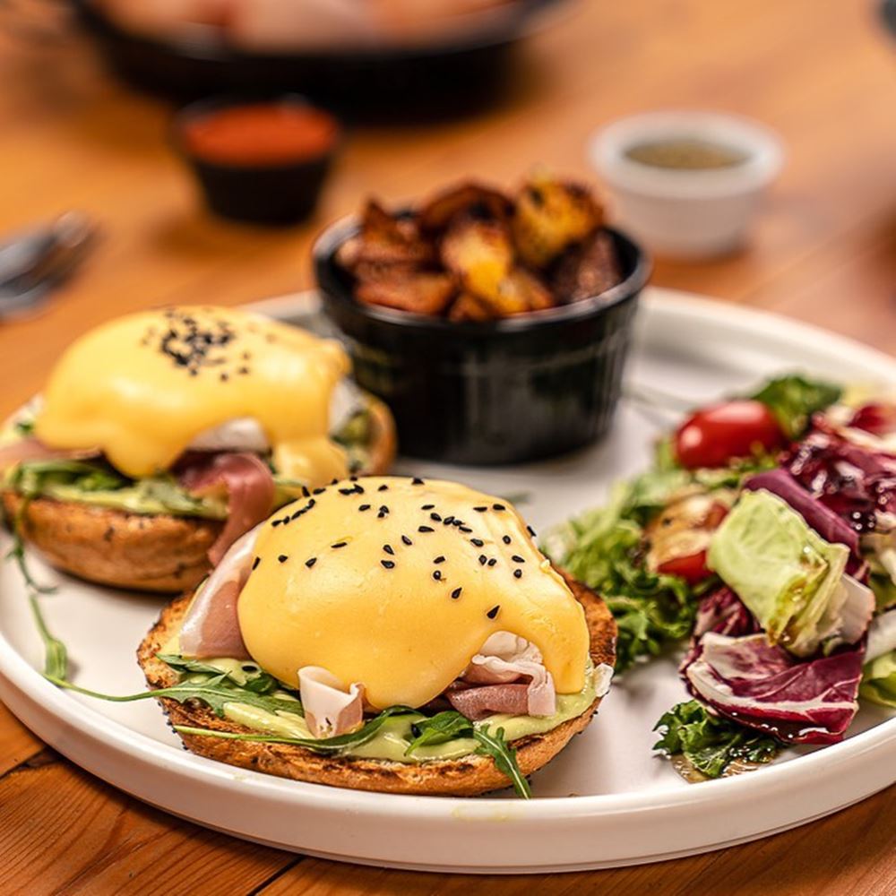Όταν η ελληνική γαστρονομία συναντάει μια διεθνή γευστική συνήθεια, τότε δεν έχεις παρά να μπεις στον πειρασμό και να δοκιμάσεις το αποτέλεσμα της μίξης. Στην καρδιά της Θεσσαλονίκης, σ’ ένα μοντέρνο και μίνιμαλ χώρο, το brunch αλλάζει επίπεδο. Με προτάσεις που δε θα συναντήσεις εύκολα, από το Egglish Breakfast και τις ζουμερές ομελέτες -προτείνουμε New Eggsperience ρολό ομελέτας σε κρέπα, την Oh my Cheese, τη Village και τη LuckyLuke- έως τα αβγά scrambled σε ψωμάκι μπριός και τα Benedict σε απίθανες παραλλαγές, όπως τα Millionnaire’s σε χειροποίητο English muffin με καπνιστό σολομό ή τα B-Eggin’ you σε bagel με κρέμα αβοκάντο, η παλέτα των γεύσεων σου επιφυλάσσει κάθε λεπτό και μια έκπληξη. Όπως και τα χορταστικά Γουάκα μάκα μόλε κοτόπουλο, Eggslut ή S-Eggs & Avo, αλλά και τα πεντανόστιμα bagels και club sandwiches, με αποκορύφωμα τα pancakes και τις αβγόφετες -είτε γλυκά είτε αλμυρά-, που μας θυμίζουν homemade goodies.