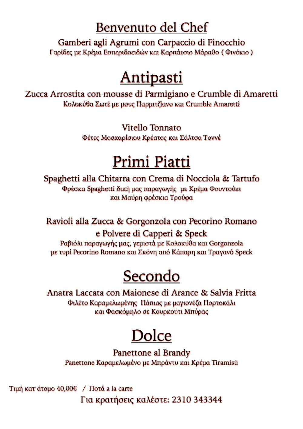 Σας περιμένει τις ημέρες των Χριστουγέννων με εορταστικό μενού