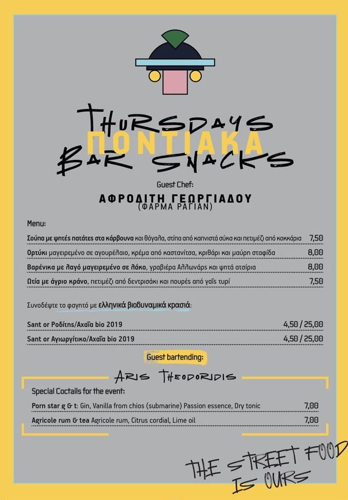 Επιπλέον, εντάσσει πλέον καθημερινά τα ποντιακά σνακς στο μενού του, εμπλουτίζοντάς το μάλιστα με τρία ολοκαίνουργια και διαφορετικά γεμιστά Περεκ: ένα με γαις τυρί ,κρεμα πασκιταν ,και πούδρα από σκόρδο ψημένο σε πελιτια, ένα με γραβιέρα αλοναρς ,κρεμα μελιτζάνας ,τσορταν ελιας & κρεμα καπνιστής κόκκινης πιπεριάς, καθώς και πουρμας με φύλλο ανοιγμένο στο χέρι γεμιστός με αγριογούρουνο ψημένο σε λάκο με πελιτια , εποχιακά λαχανικά και μπεσαμέλ από κεφιρ και παρχαροτυρι. Κι αν έχεις άγνωστες λέξεις, μία δοκιμή θα σε πείσει!