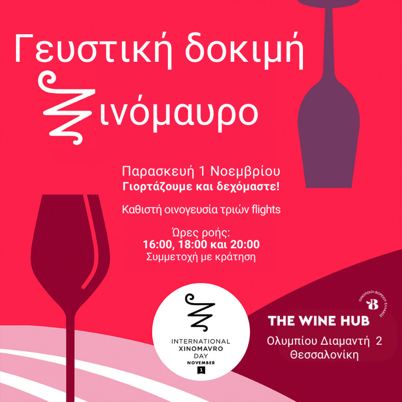 Στη Θεσσαλονίκη, στο “The Wine Hub”, την έδρα της Ένωσης “Οινοποιοί Βορείου Ελλάδος”, προτείνεται για το κοινό μια σειρά γευστικών δοκιμών αφιερωμένων στο Ξινόμαυρο. Σε 3 διαφορετικές ροές (16:00, 18:00 και 20:00), οι συμμετέχοντες/ουσες θα έχουν την ευκαιρία να ανακαλύψουν τις εκφράσεις της ποικιλίας μέσα από 3 θεματικά flights. Κάθε γευστική δοκιμή είναι σχεδιασμένη ώστε να αναδείξει τα ιδιαίτερα χαρακτηριστικά του Ξινόμαυρου και να εμβαθύνει στη γνώση της ποικιλίας.