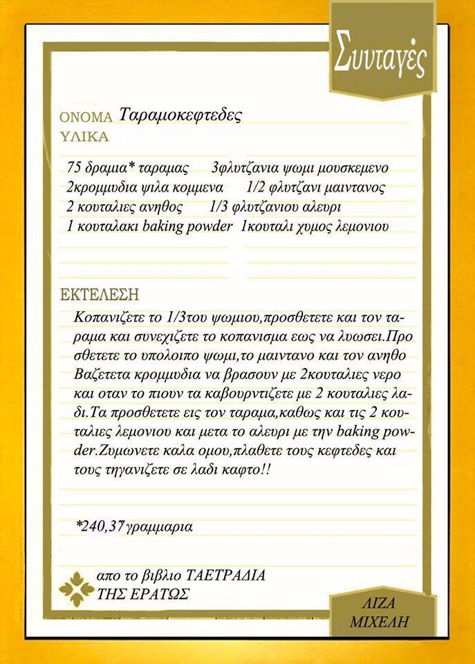 Ταραμοκεφτέδες από τετράδια συνταγών στη Σμύρνη 1867- Αυτούσια η συνταγή